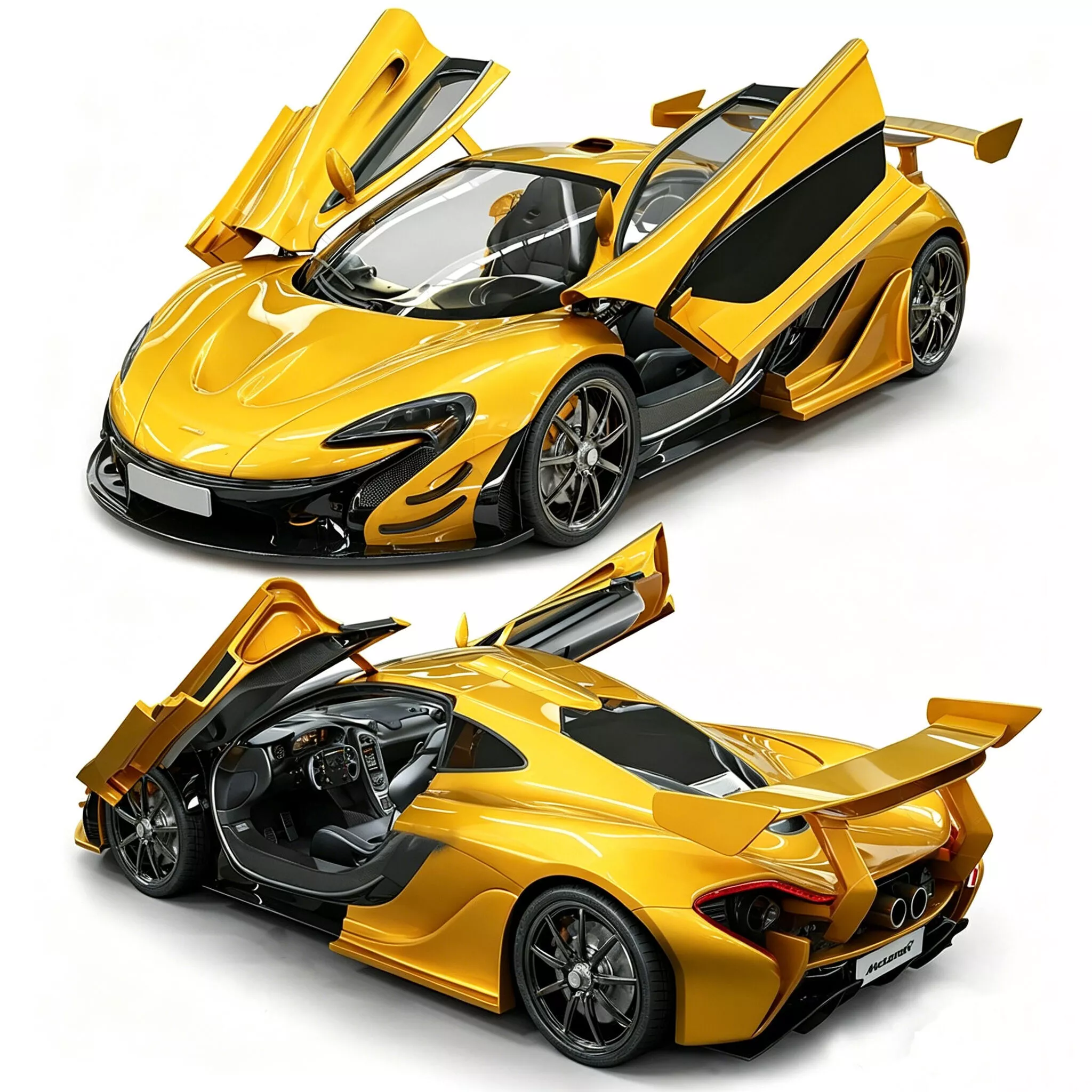 Elevate your automotive render, luxury car scene, and design projects with this meticulously crafted 3D model of the McLaren P1, the legendary hybrid hypercar known for its aggressive aerodynamics and iconic butterfly doors.