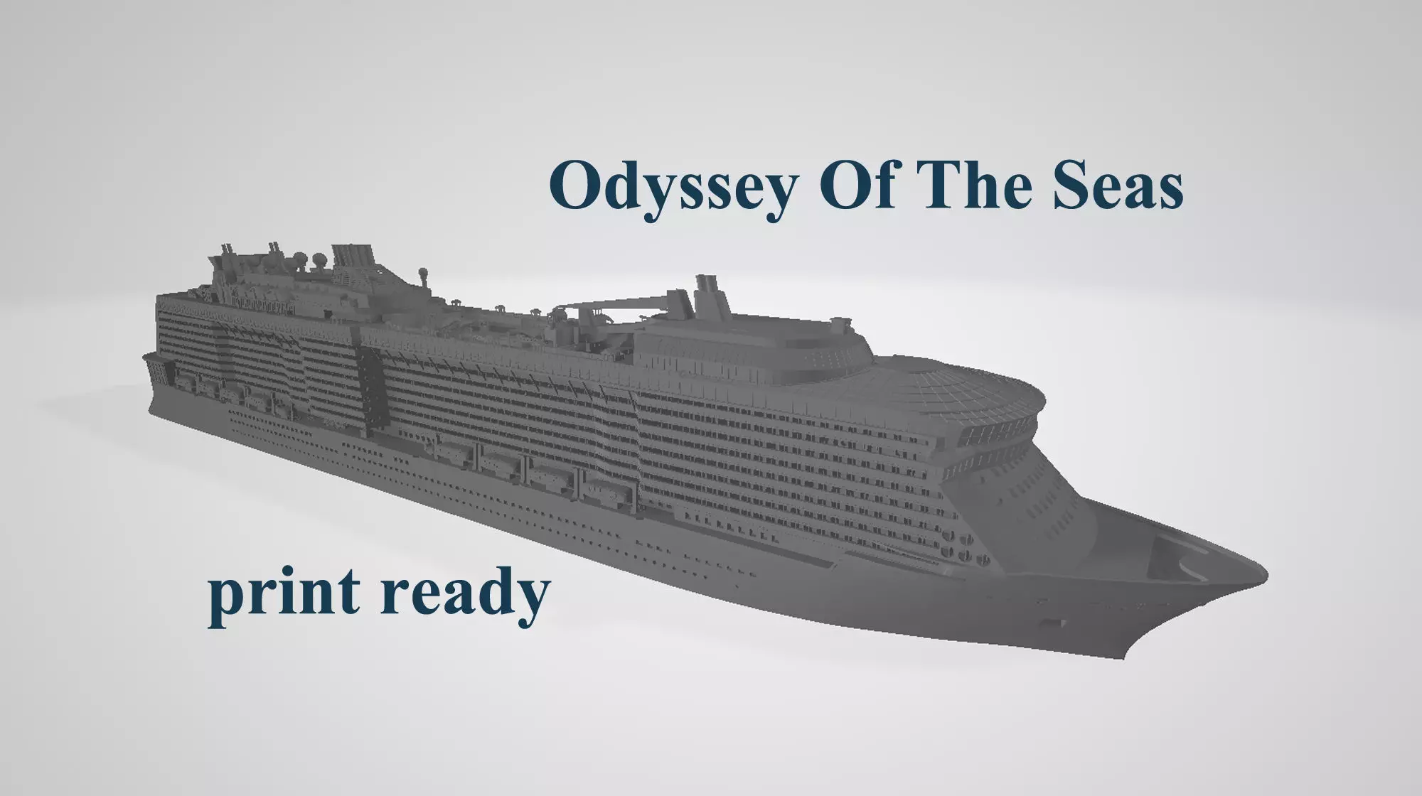 A detailed model of the Royal Caribbean International ship Odyssey Of The Seas, optimized for 1/1.250 resin printing but very easily printable at larger or smaller scales.