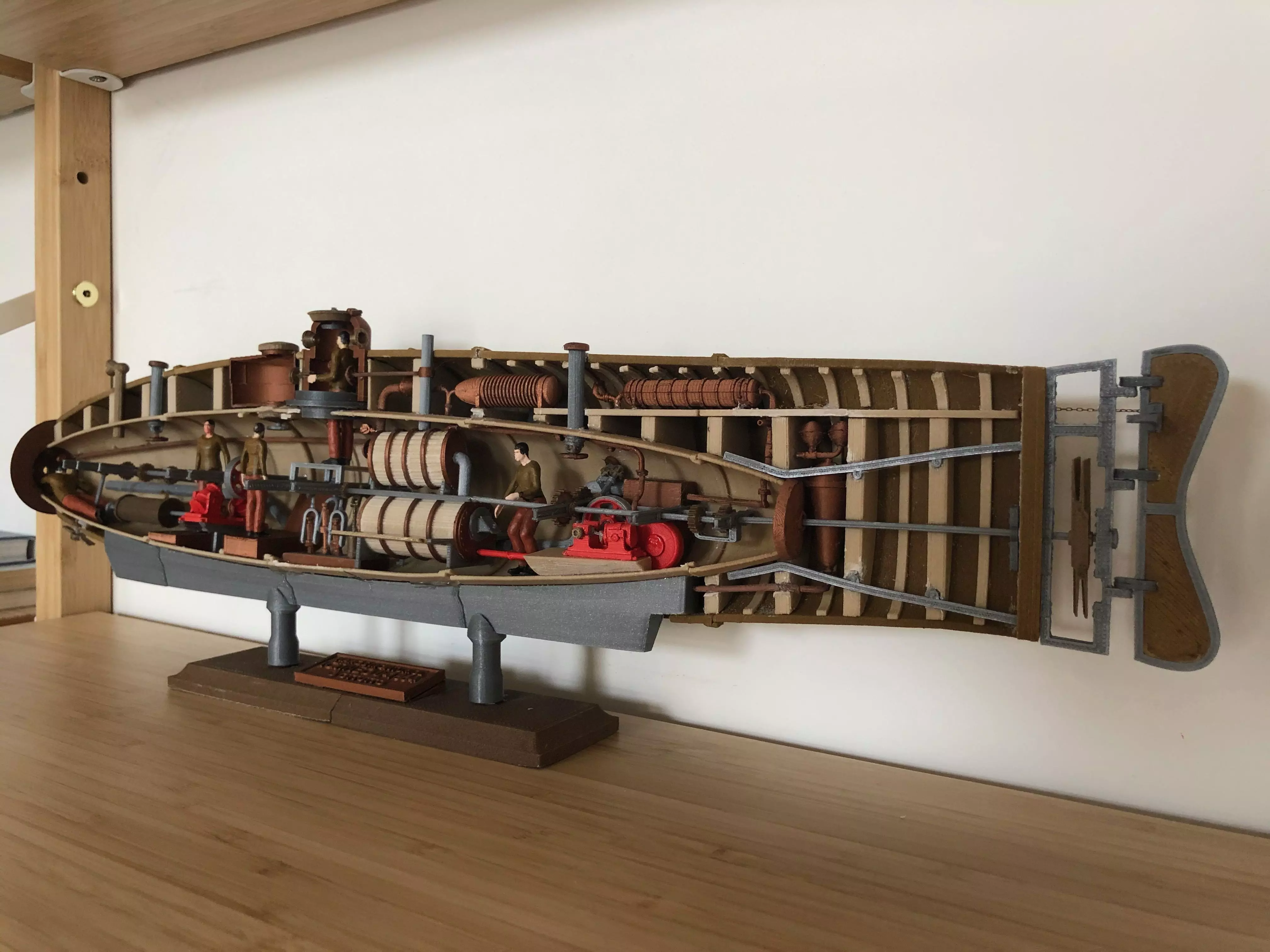 The final size of the boat is 520 x 121 x 90 mm (20.5 x 4.8 x 3.5 inch). Scale 1:33 and consist of 5 sections. In total more than 300 parts.