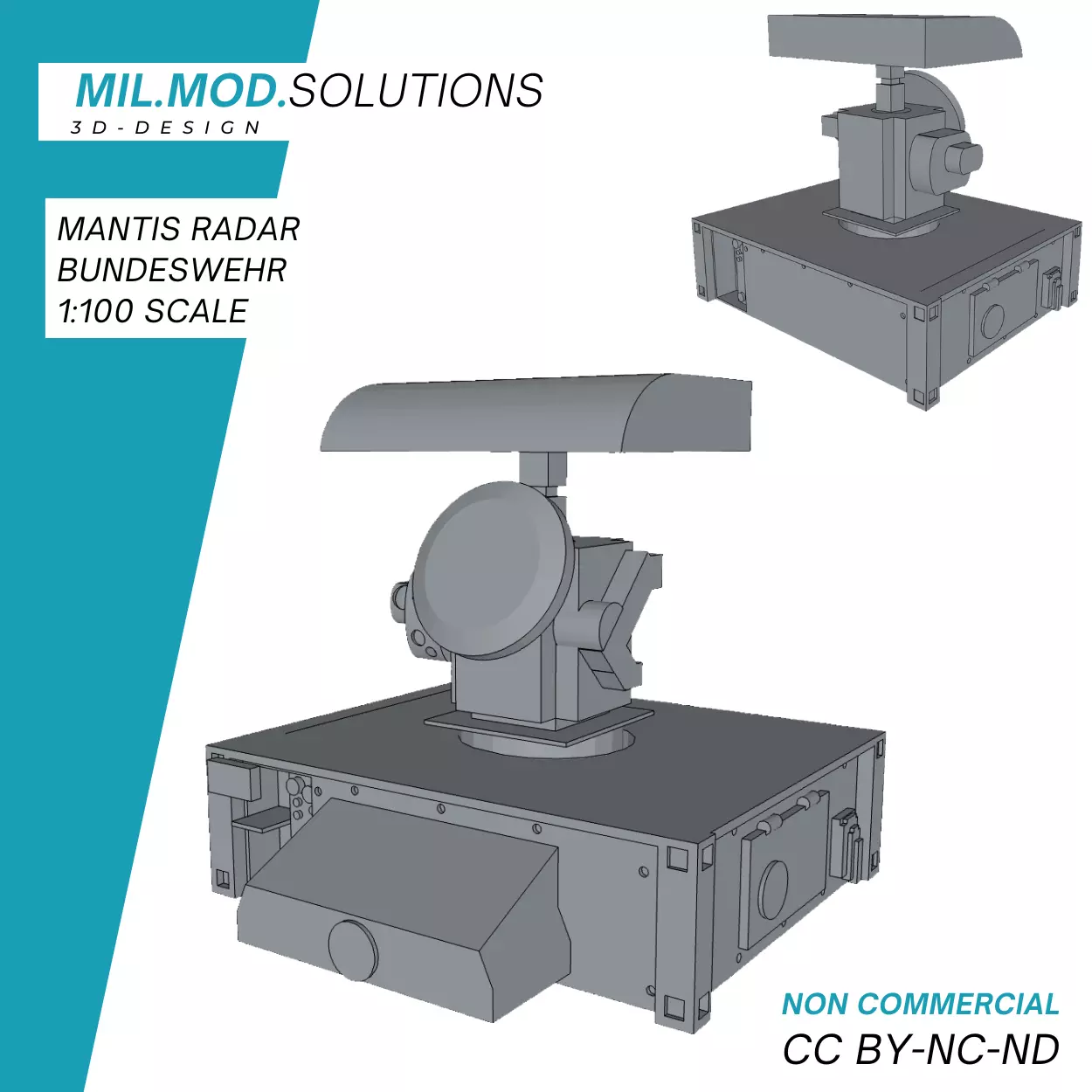 MANTIS Flugabwehrsystem der Bundeswehr(Maßstab 1:100)Skalierung auf Maßstab 1:56: 172%Dieses Modell stellt ein MANTIS Flugabwehrsystem der Bundeswehr dar, welches von Rheinmetall ab 2011 bis heute für mehrere Länder als Flugabwehrsystem produziert und geliefert wird.Die Radar Variante klärt dabei den Luftraum auf.