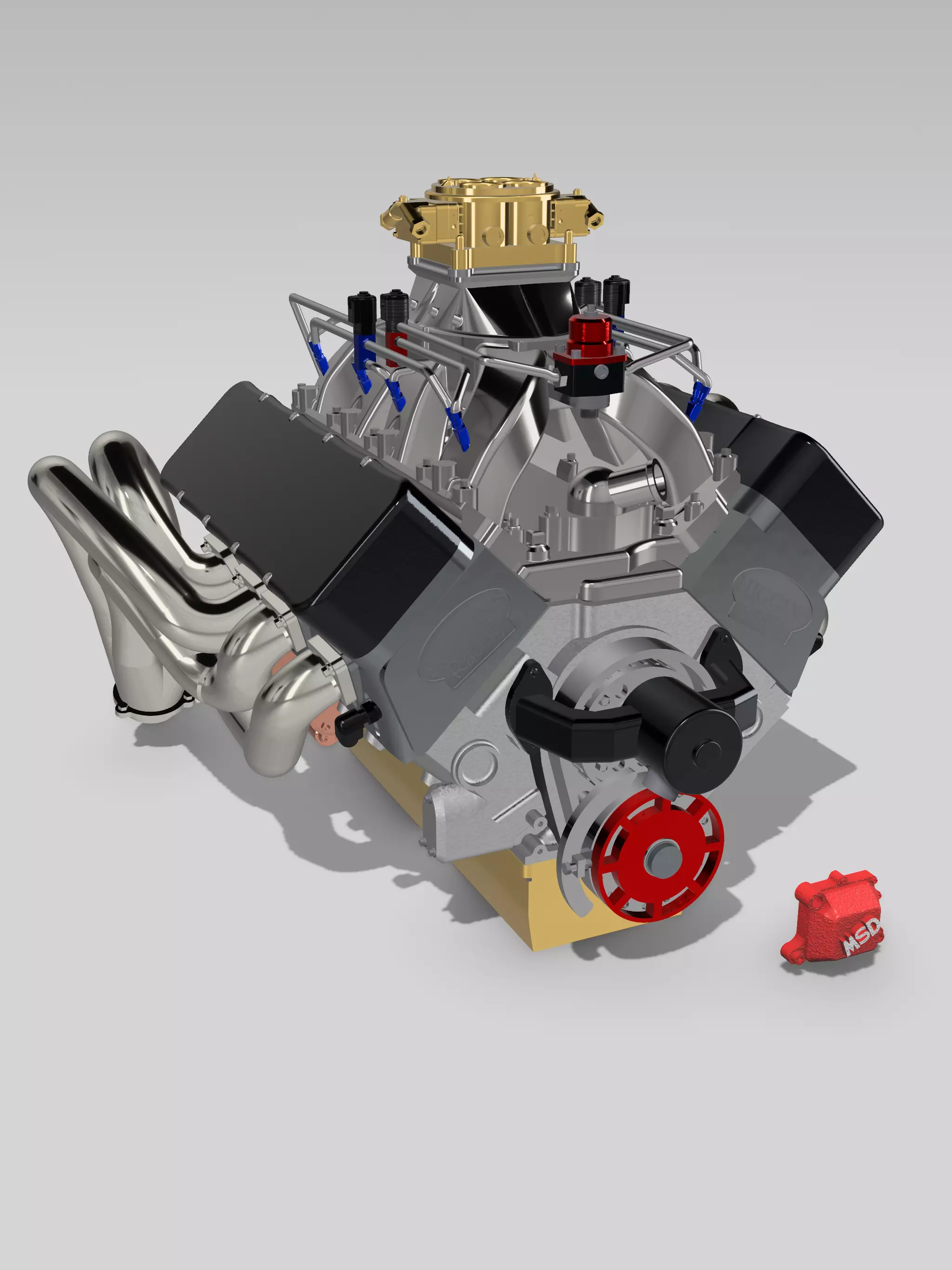 Designed from scratch is Small Block Chev street/drag style engine, with 3 configurations and several options, high in detail, ideal for scale modeling (currently in 1/24 and 1/25 scale).