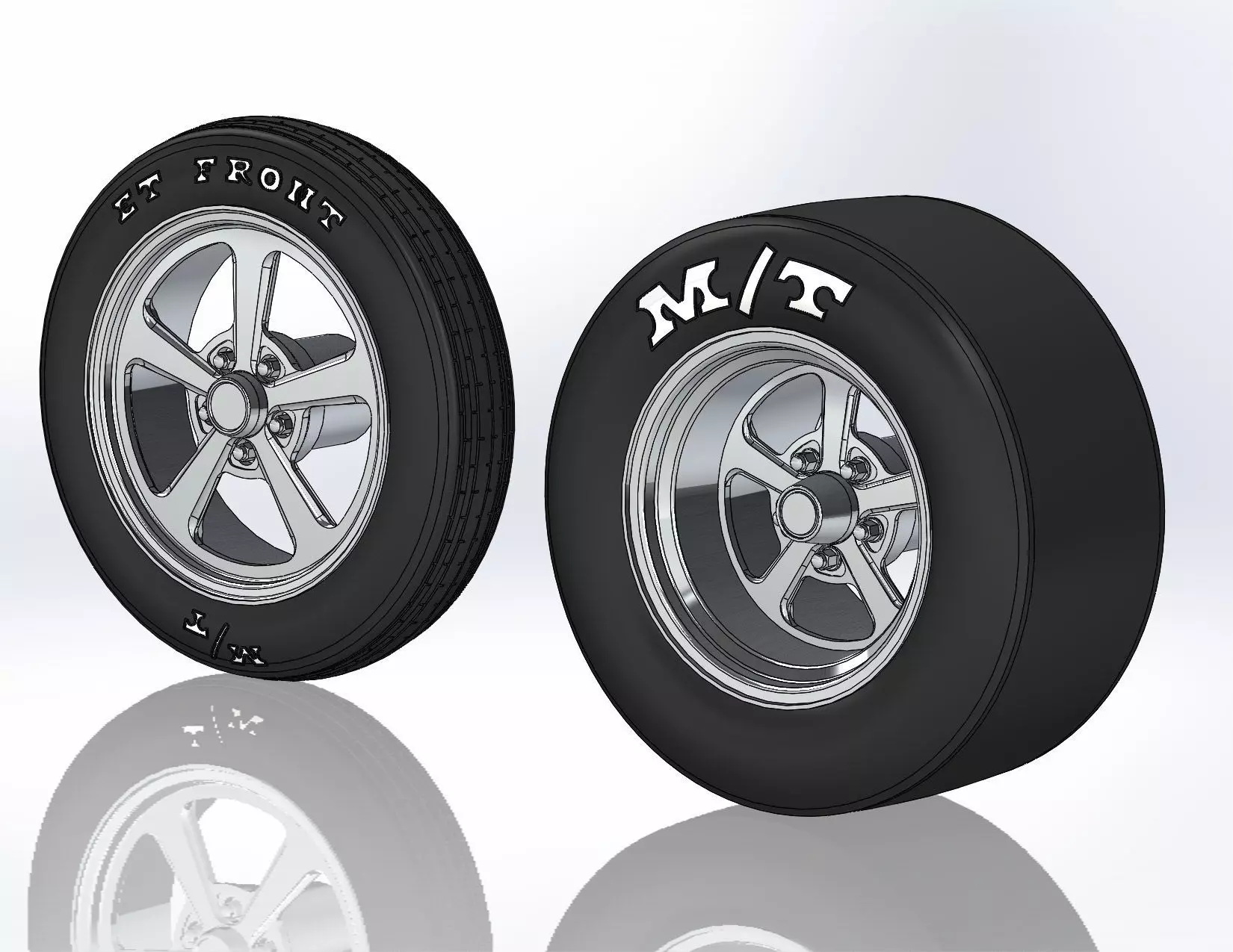 3D-printable wheels for scale model, rims and tyres separately . Rims: Billet Specialties - Dominator: rear 15x10, front 17x4.5; Tyres: rear 26/10-15, front 26/4-17