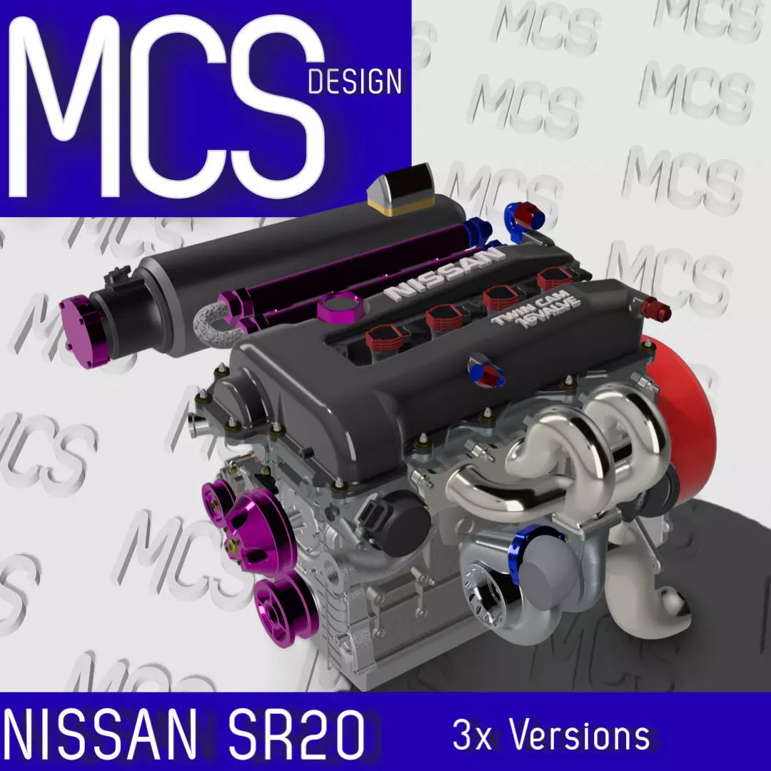 Designed from scratch is a Nissan SR20 engine, with several configurations to suit your build, high in detail, ideal for scale modeling (currently in 1/24 and 1/25 scale).