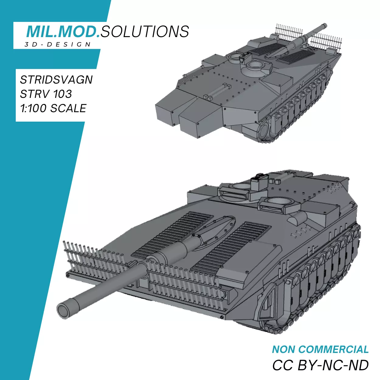 Zum Modell:Die STL-Dateien umfassen mehrere Druckmöglichkeiten des Stridsvagn 103, welche alle auf Basis des Maßstabs 1:100 angefertigt sind.
