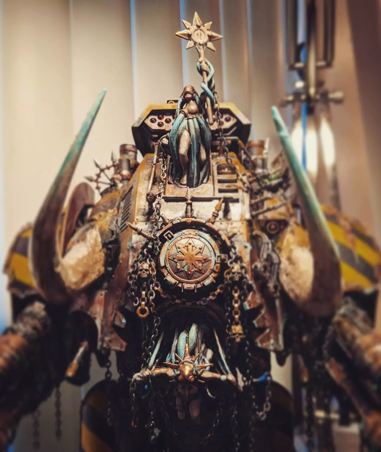 My full conversion set for the Knight Porphyrion! This set includes a pair of tusks, a head replacement (fixed with proper scaling), and a top hatch replacement. The Pilot and the Hatch figures fit snugly without much work required, but I'd recommend using greenstuff to blend the tusks into the carapace. I printed my set on an Anycubic Photon in 3 sessions - one for the pilot and bulb, one for the hatch figure, and one for the pair of tusks. I'd recommend doing the same, but the pilot, bulb, and hatch figure could probably be printed together with careful angling. Feel free to contact me with any questions, and keep your eye out for my next project - a kit for a plastic knight and a kit for war dogs!