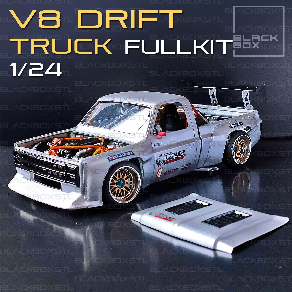 3D Printable file of Complete Full modelkit of a V8 Drift truck.