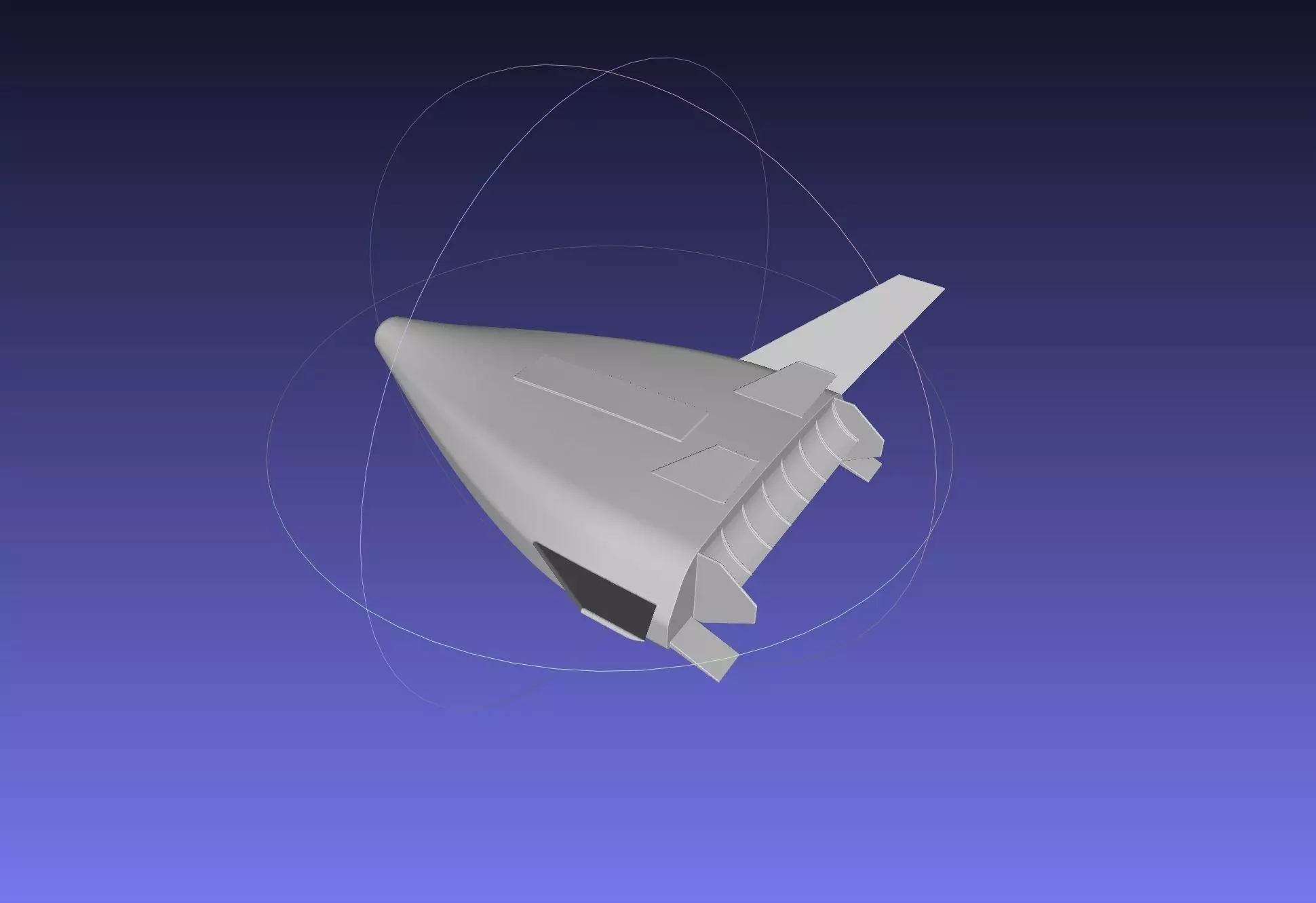 The Venture Star also known as X-33 (although the X-33 was technically a smaller test-model version) was a theoretical concept for an SSTO or single-stage-to-orbit rocket developed by Lockheed-Martin for NASA. The Spaceplane would have been powered by 7 joined linear aerospike engines making it more efficient when transitioning from dense atmosphere to vacuum and would have been fuelled by liquid hydrogen and oxygen. A few components were tested but unfortunately the project was cancelled as it became too complex and the new technologies that would have to be developed were considered too expensive.This model is based on the concept design - the model is full scale but designed to be scaled down and printed in an average 3d-printer