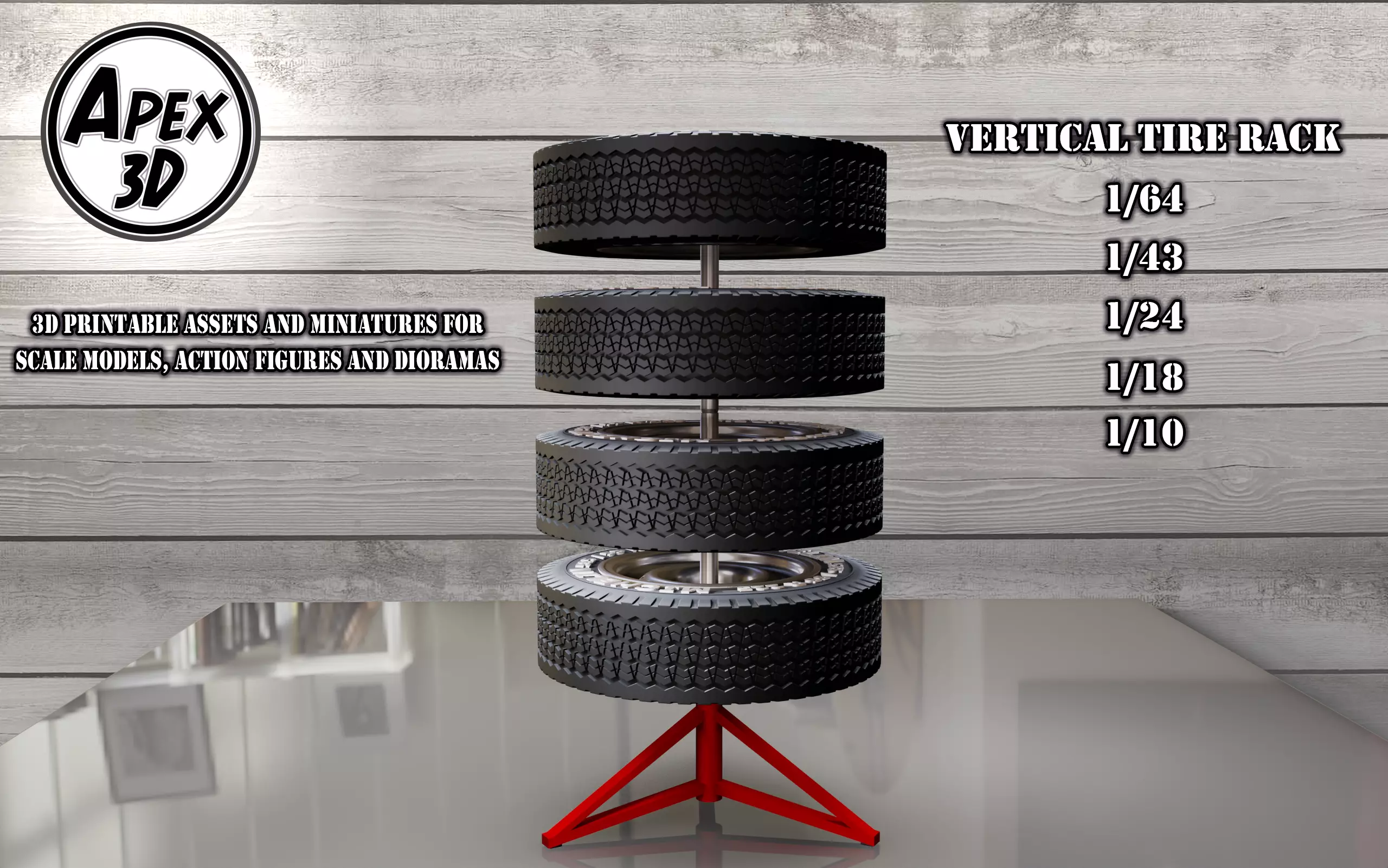 This Vertical Tire Rack miniature is an excellent gift for anyone interested in dioramas, scale models and/ or action figures, and it's a must-have for collectors.So, whether you're looking to add some realism to your displays or simply want to expand your collection, this 3D printable Vertical Tire Rack miniature is the perfect choice.