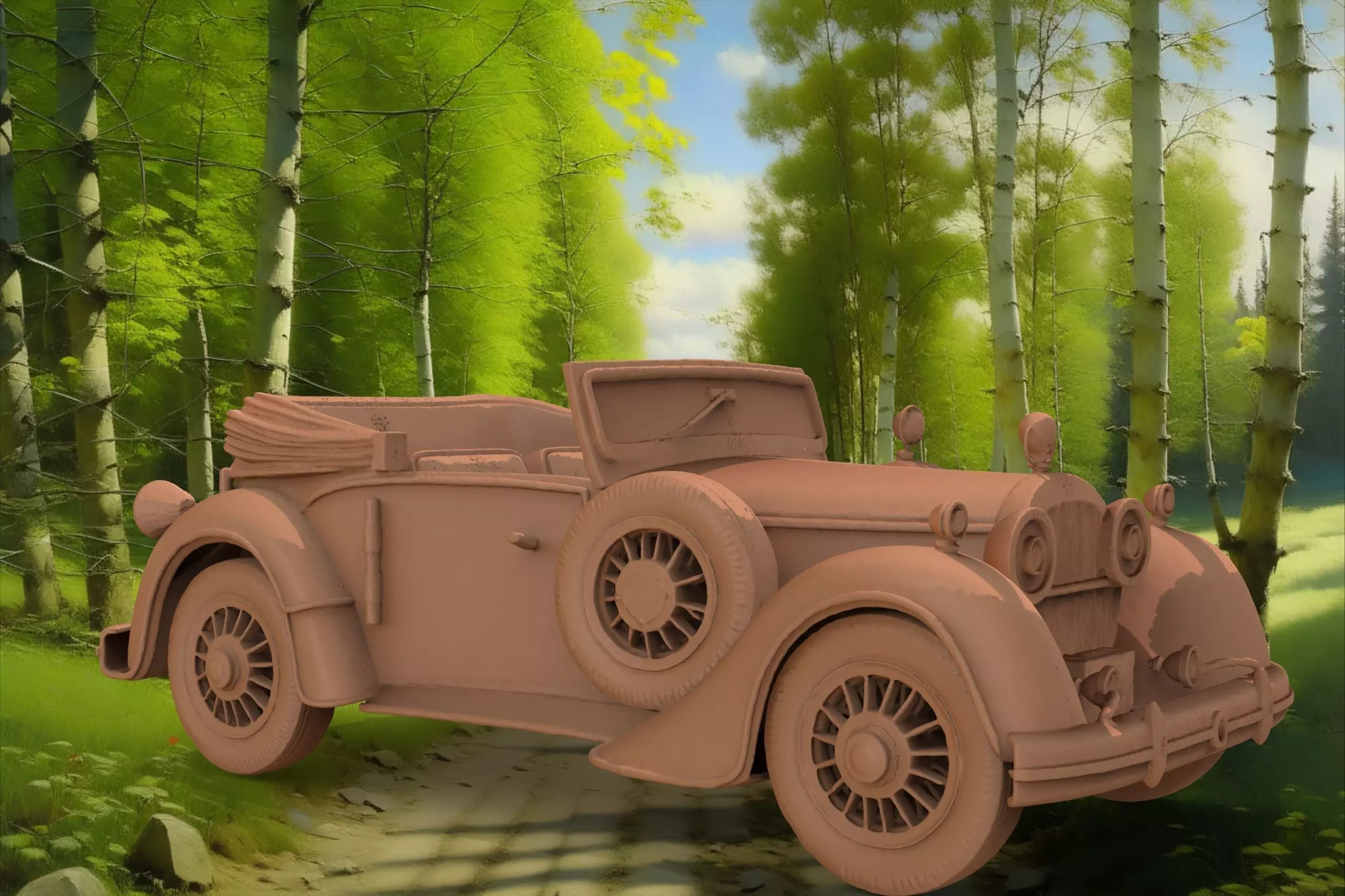 Bring timeless elegance to your projects with this highly detailed vintage convertible car inspired by classic 1930s automotive design. This 3D model captures the charm of early luxury vehicles, featuring smooth curves, iconic round headlights, external spare wheel, and finely crafted wheels.