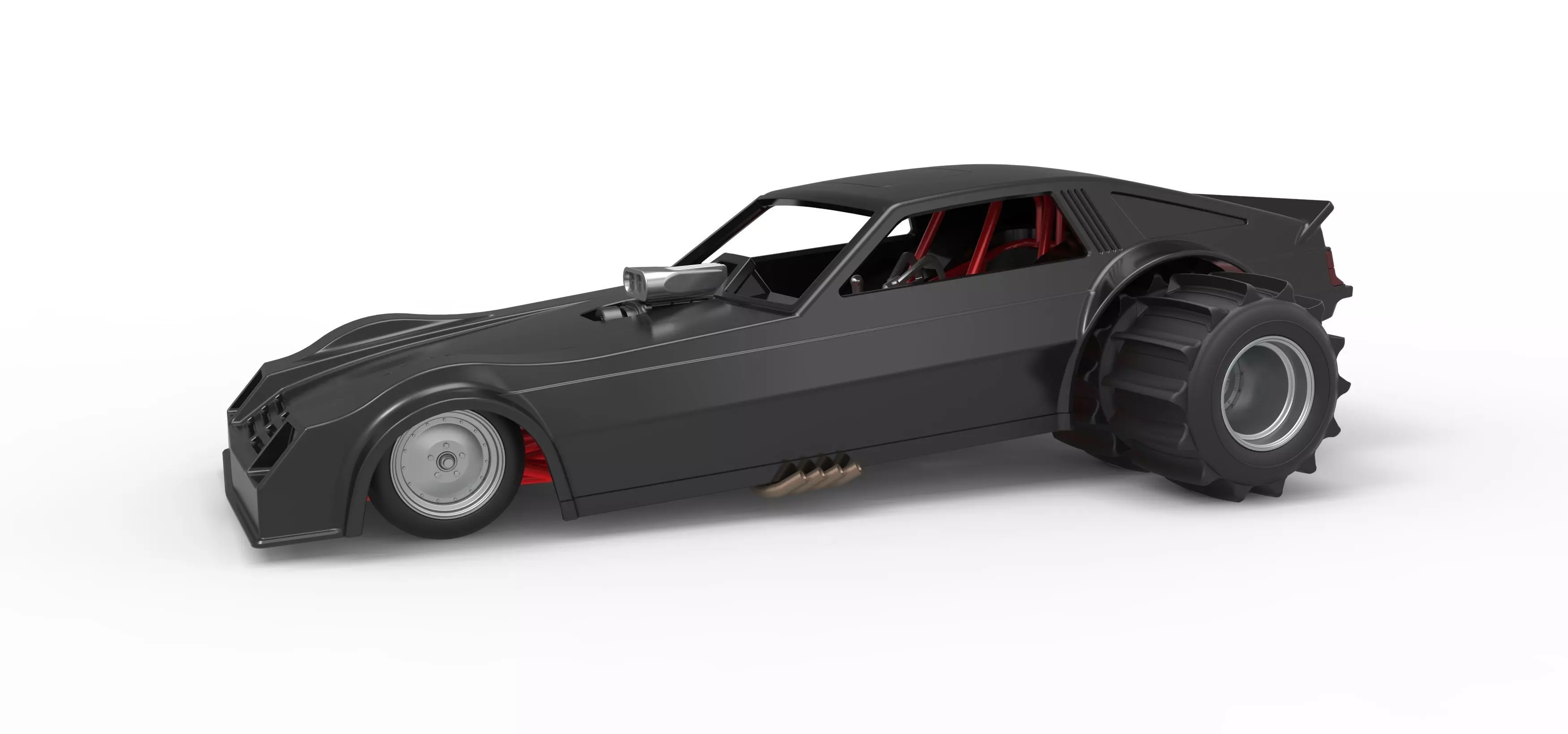The model consists of parts: Engine, Extinguishers, Frame, Front rims, Front tires, Left exhaust, Parachutes, Rear inner rims, Rear outer rims, Rear tires, Right exhaust, Scoop, Shell, Shifter, Stand, Steering wheel, Tank, Wheelie bars.