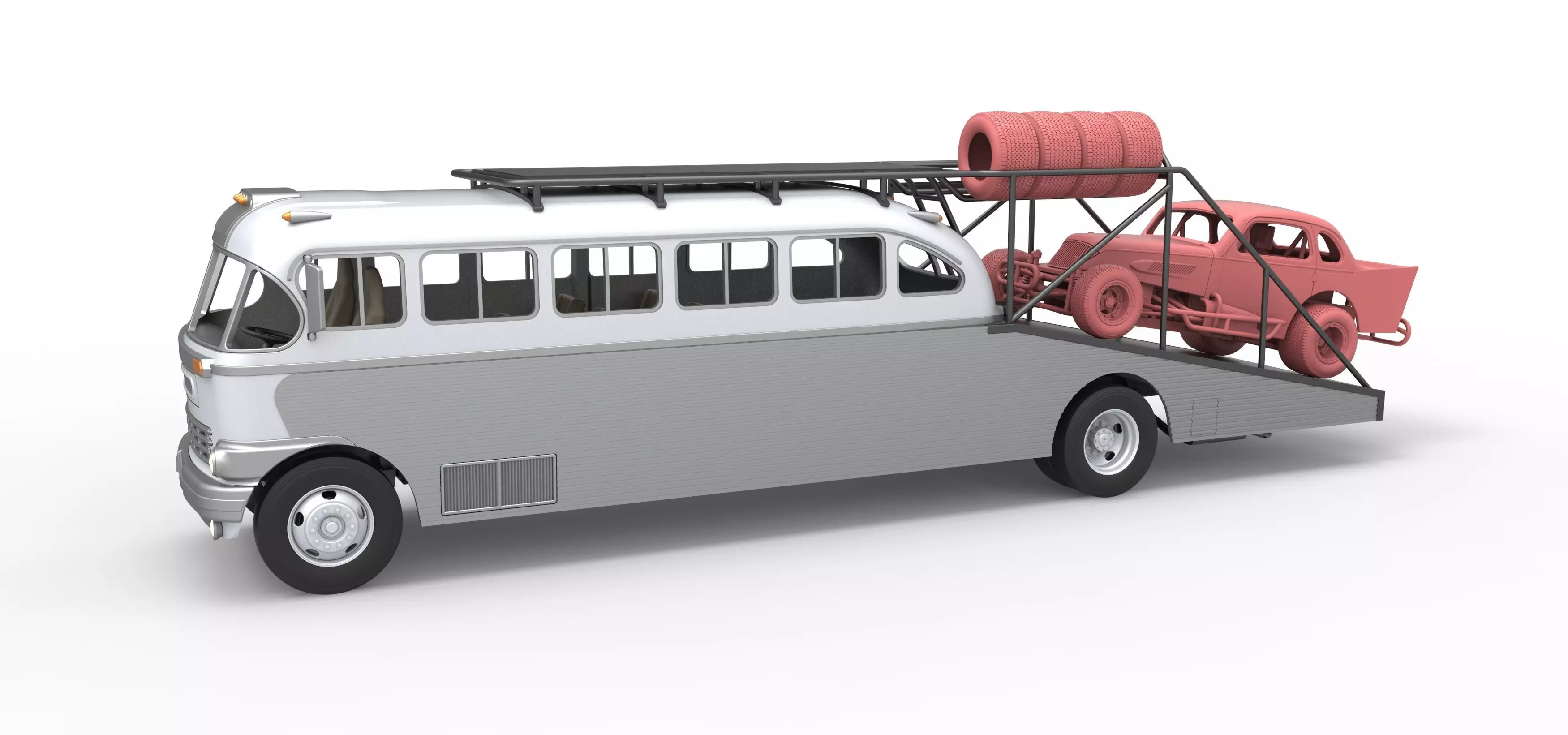 The race car and spare tires are not included to the model.