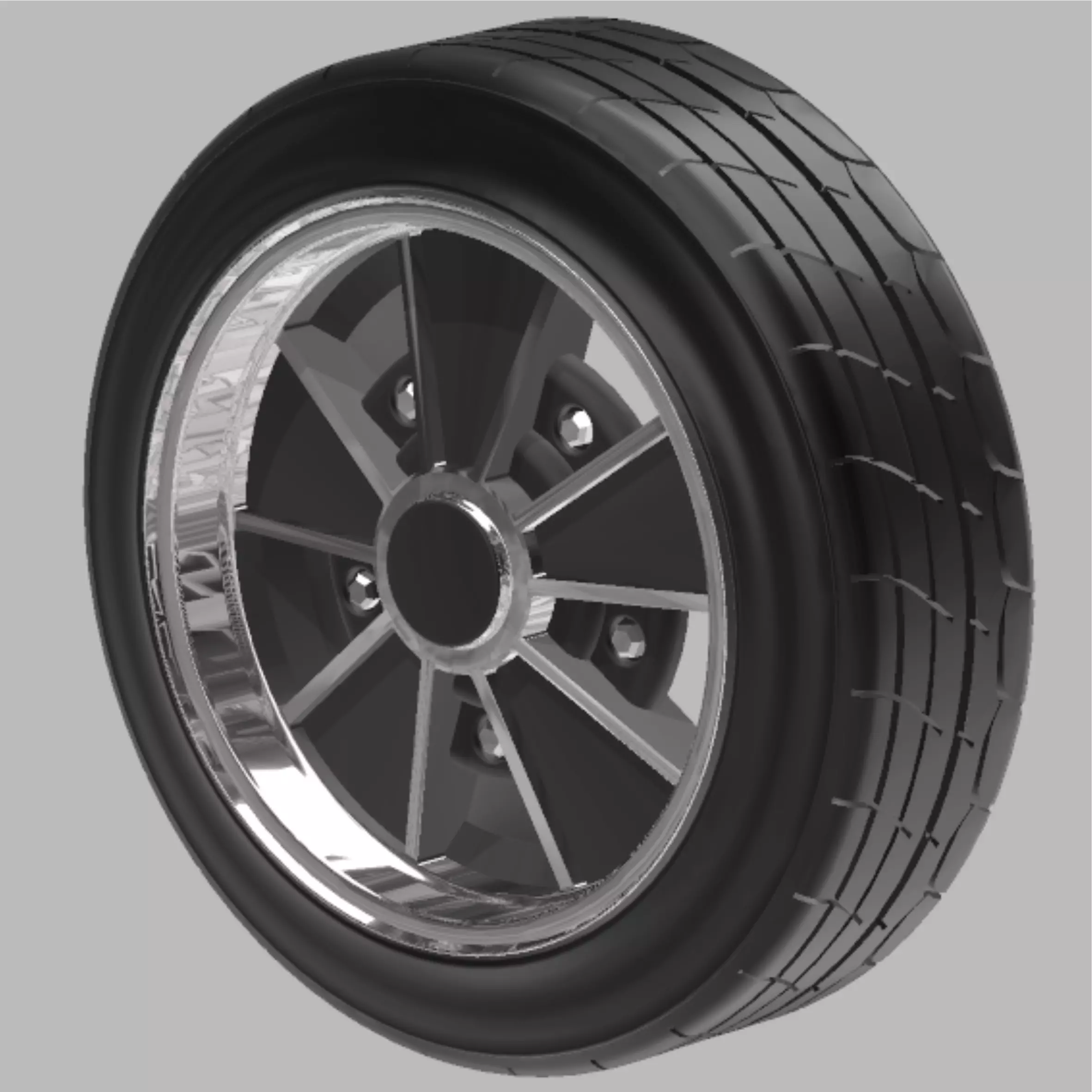 Great wheel to add detail to any VW Air cooled scale car!Already in 1/24 scale.Needs a 2,5mm axle.17x8 wheel, and matching tire.If you wan't, you can rescale it too. I recomend you print one unit just to make sure is the right size for you.There's no gap between the wheel and the tire, if you need, scale up 2~3% of the tire, so it will fit better to the wheel. Do a test print before printing the full set.If you like my designs, you can tip me and credit me with the design.If you like to sell the prints of my designs just buy them here and credit me with the design, no need to ask or pay commisions.I can do commision designs, just ask me what you need and I'll see what I can do.Just scale it up to the size you want and print with you favorite resin printer.If you need any help, don't hesitate on contacting me.Drilling and Sanding may be needed.