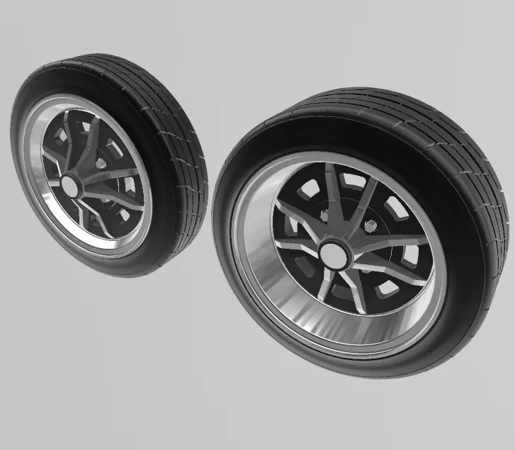 Already in 1/24 scale.Need 2.5mm axle.There is a 15x5,5 and a 15x8 wheel, and matching tires.If you wan't, you can rescale it too. I recomend you print one unit just to make sure is the right size for you.There's no gap between the wheel and the tire, if you need, scale up 2~3% of the tire, so it will fit better to the wheel. Do a test print before printing the full set.If you like my designs, you can tip me and credit me with the design.If you like to sell the prints of my designs just buy them here and credit me with the design, no need to ask or pay commisions.I can do commision designs, just ask me what you need and I'll see what I can do.Just scale it up to the size you want and print with you favorite resin printer.If you need any help, don't hesitate on contacting me.Drilling and Sanding may be needed.
