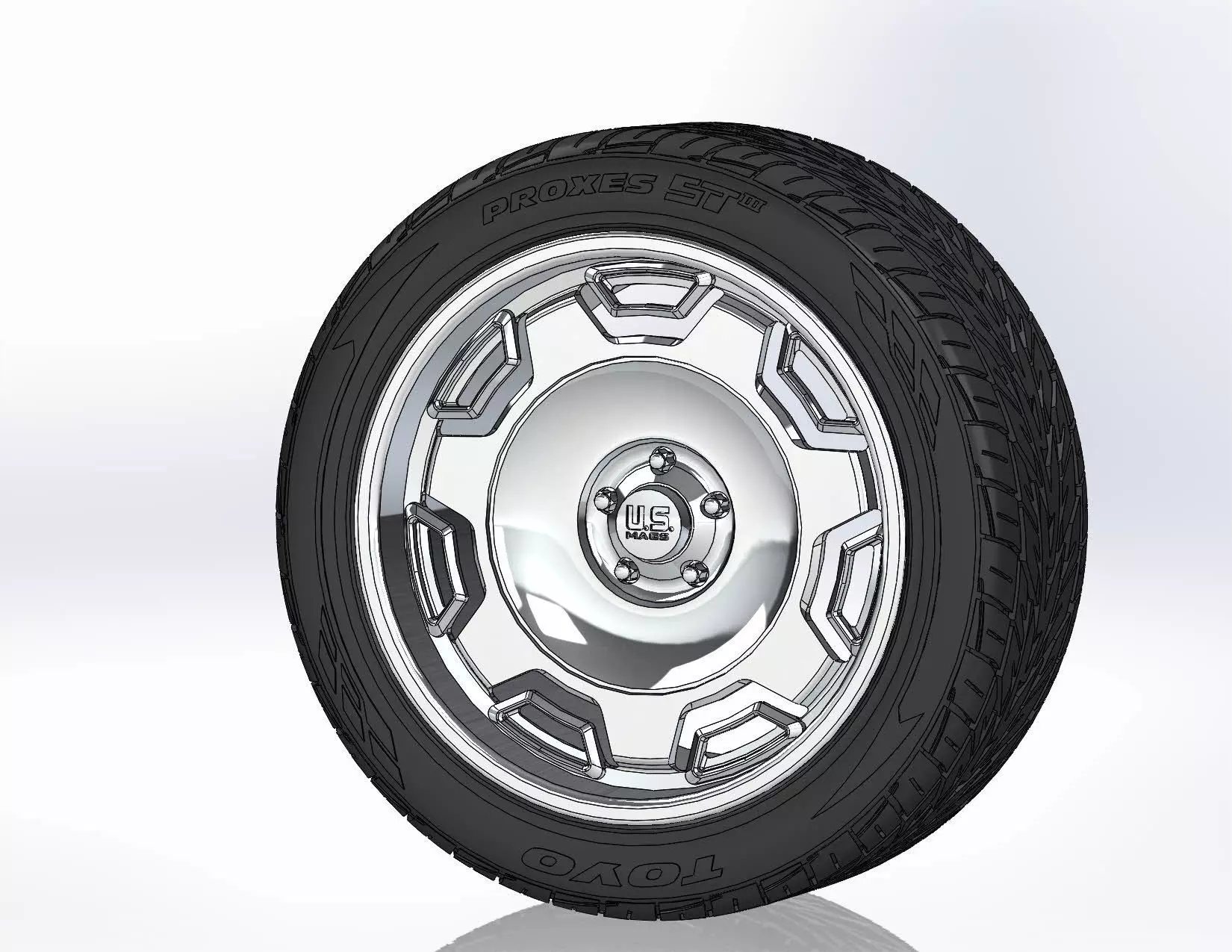 3D-printable wheels (rims and tyres separately) for your scale model . Rims style - US Mags Prescott, 20x9.5; Tyres - 275/40 ZR20 with a detailed tire tread pattern;
