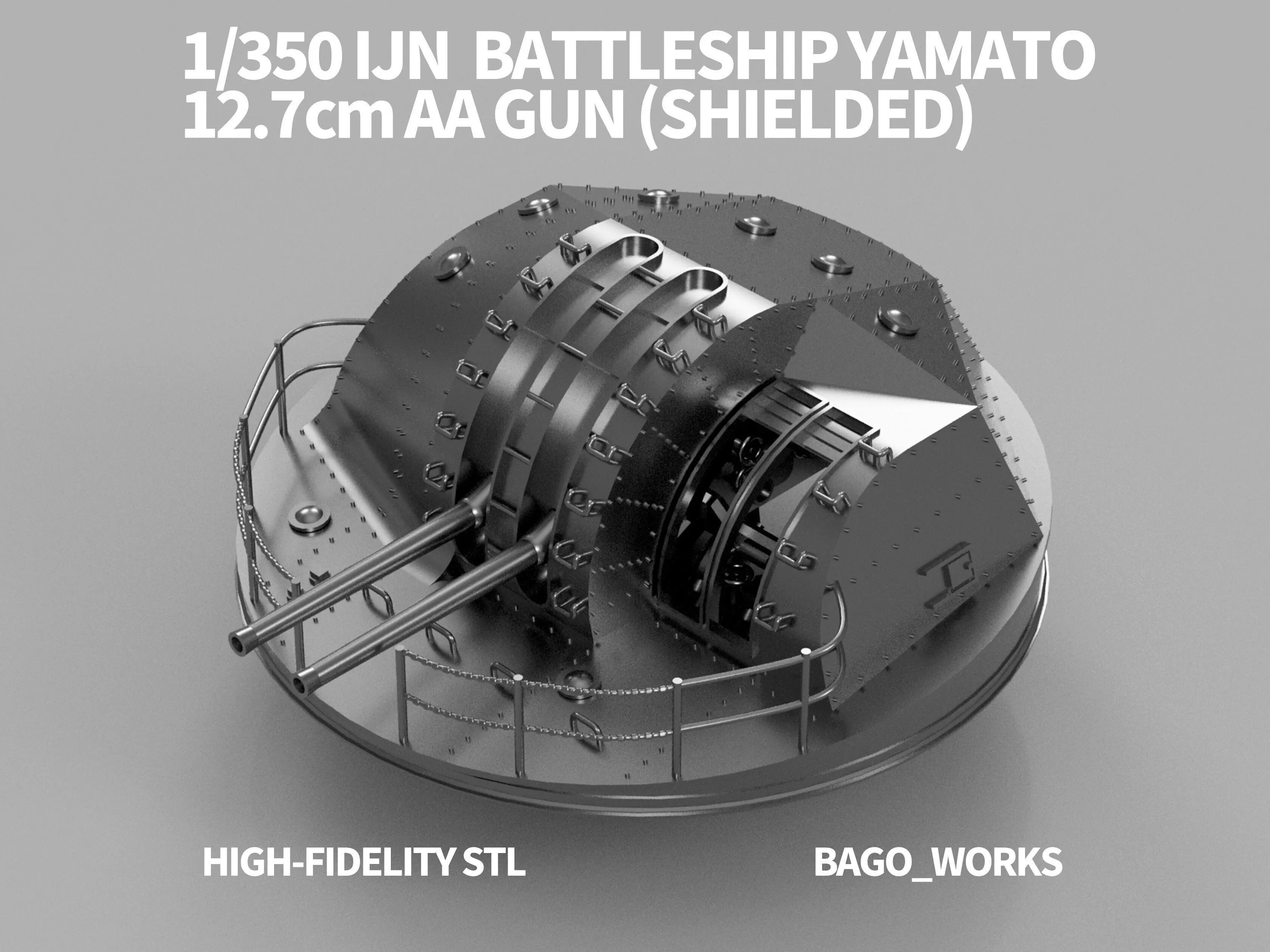 Product OverviewA highly detailed 3D model of the Type 89 12.7cm Twin High-Angle Gun (Shielded Type) equipped on the Battleship Yamato.Designed by a professional mechanical engineer, this model accurately reproduces the specific shielded shape used on the Yamato.