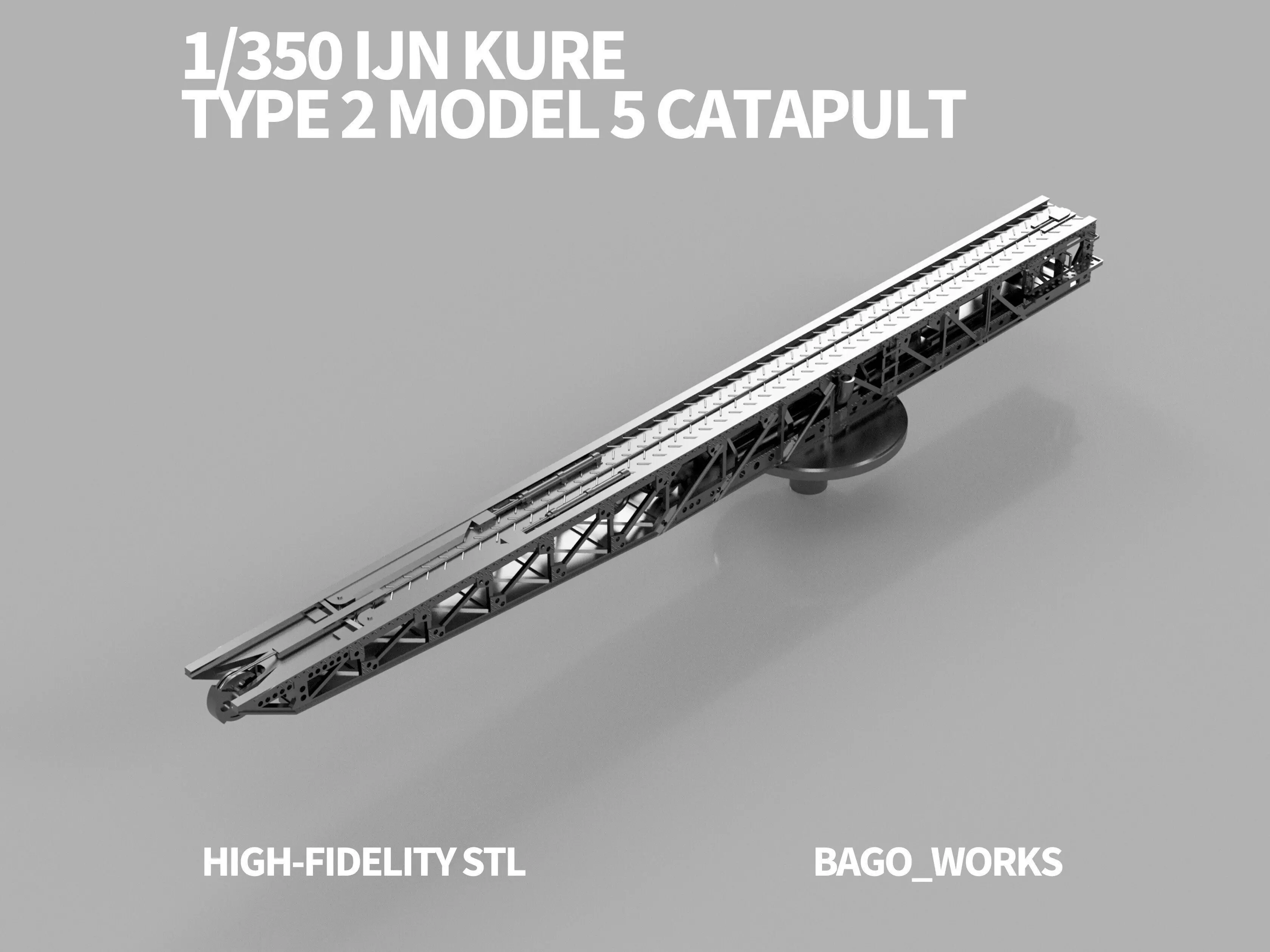 A highly detailed 3D model of the Kure Type 2 Model 5 Catapult, the standard aircraft launcher used on many Imperial Japanese Navy warships including Yamato and Musashi.