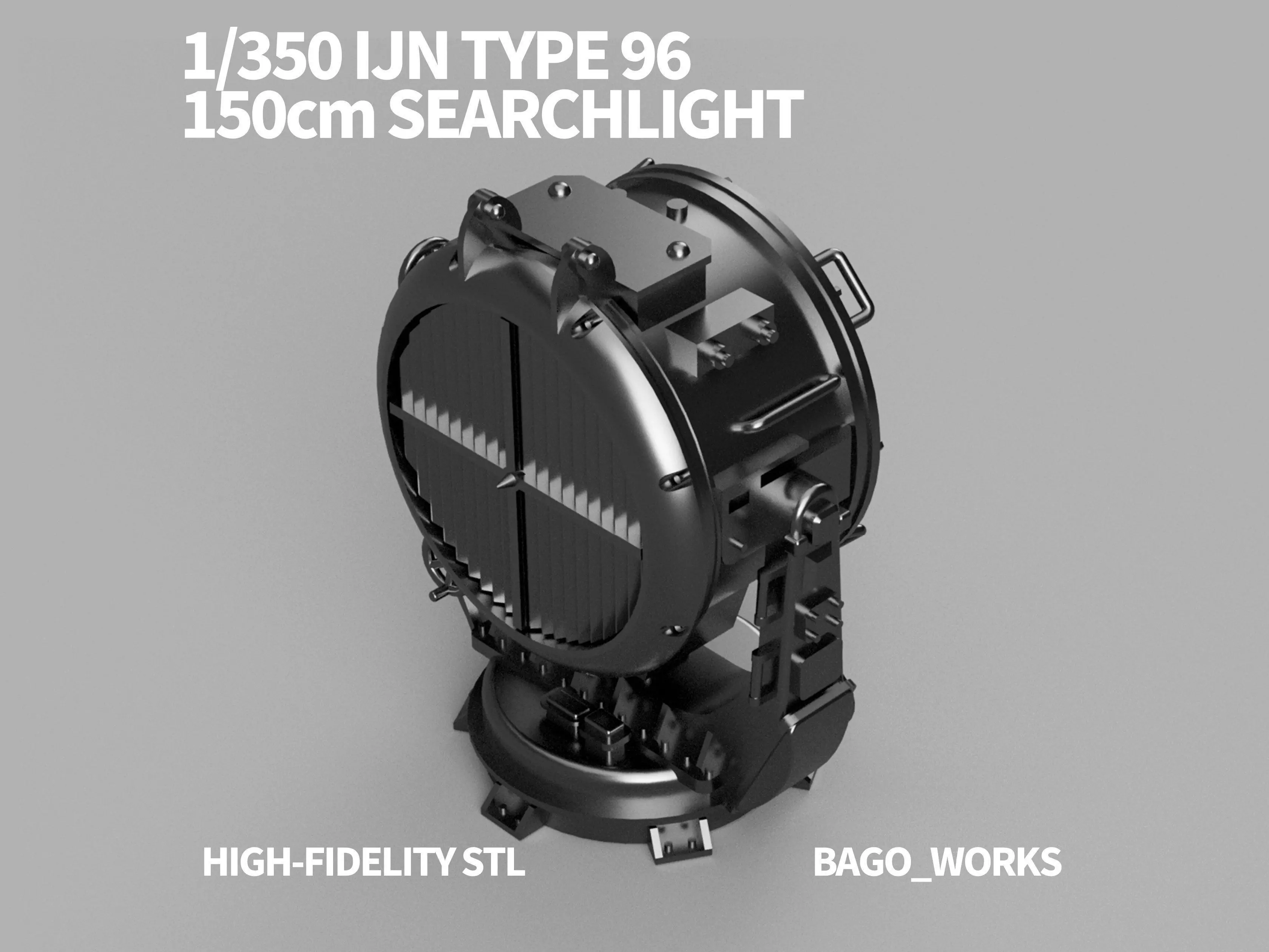 A highly detailed 3D model of the Type 96 150cm Searchlight equipped on the Battleship Yamato.Designed by a professional mechanical engineer, this model is separated into components to maximize realism and ease of painting.
