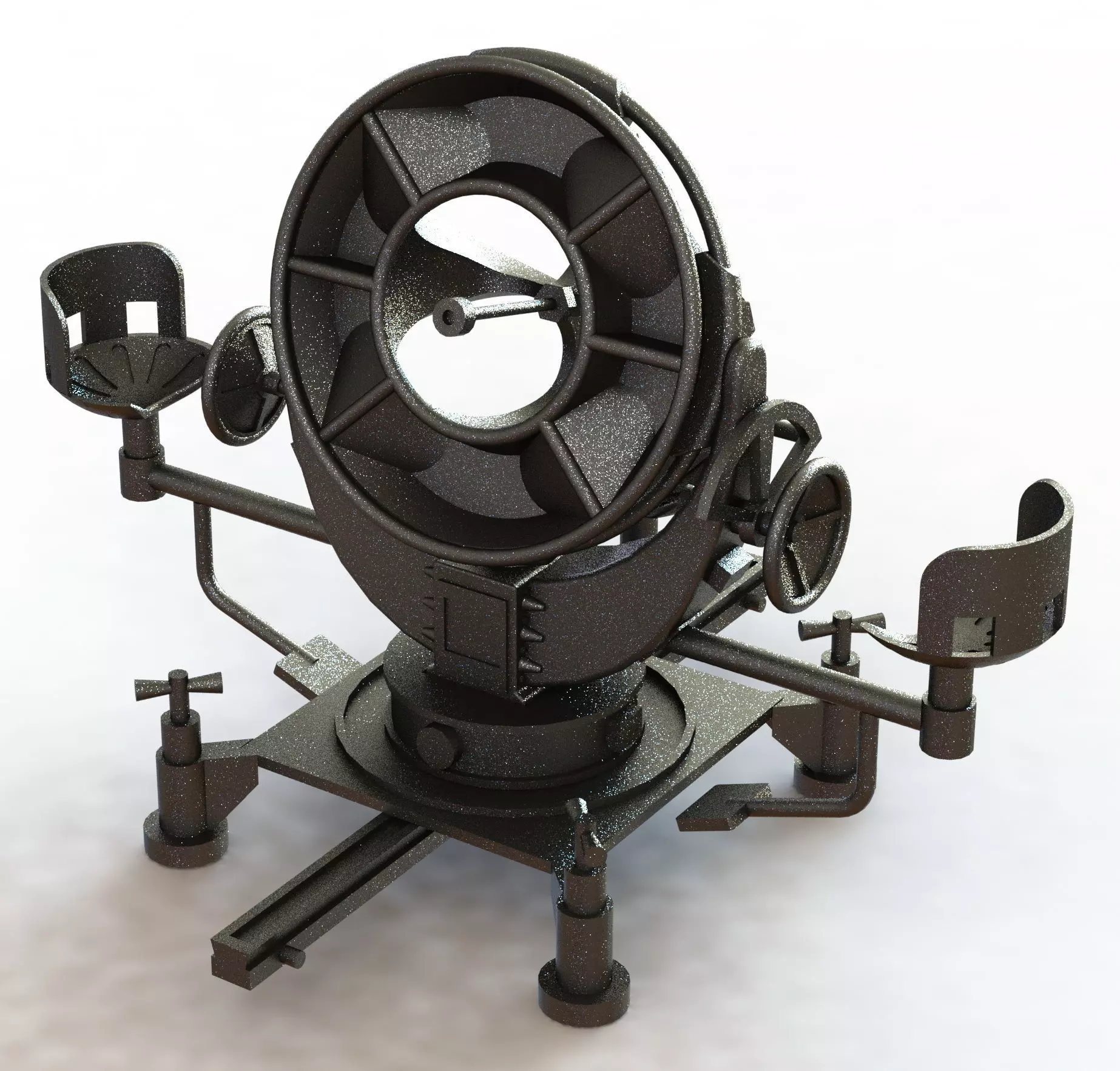 1/48 Scale model in STL, IGES, STEP and Solidworks formats.Until the beginning of the Second World War, the anti-aircraft searchlight batteries were each equipped with six to eight RRHs, which the troops called listening devices for short. These were used to acoustically detect approaching enemy aircraft at night and to roughly determine their direction of flight using two sound horns for lateral and elevation values. When both listeners had a central impression by swinging the horns, i.e. the engine noise of the aircraft being targeted then reached both ears of each listener without a time difference, they pressed a hand button independently of one another. The delay calculator on the back of the device then calculated the distance that the target had covered on the ground between the sound being emitted and the detection of it, taking into account the target movement and an estimated target speed. The new angular values were transmitted to the searchlights by telephone or electronically. This target guidance made it easier for the searchlights to find and detect the target.