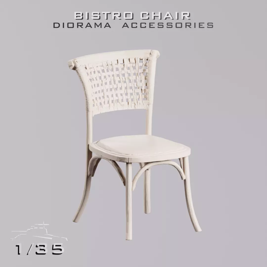 Add life and realism to your 1/35 scale dioramas with this classic bistro chair.Inspired by traditional café furniture seen across Europe in the early and mid-20th century, this chair is perfect for building street scenes, village environments, or café settings.A simple object that instantly adds storytelling and atmosphere to any diorama.Perfect for Diorama Scenes