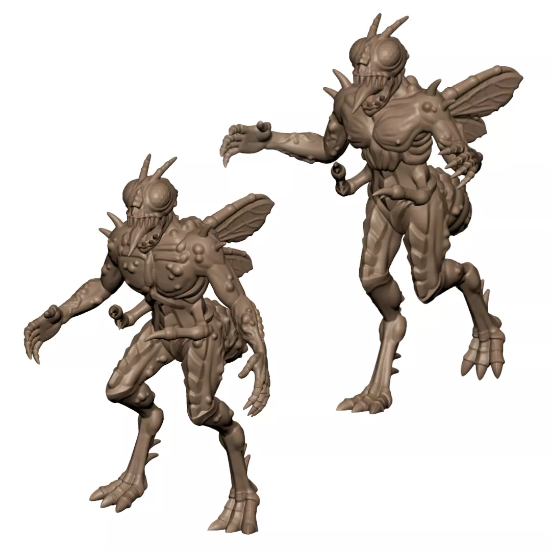 This pack includes two grotesque fly-spawned mutant cultists, sculpted with exaggerated sinewy musculature, veined wings, and horrific insectoid faces. Perfect as corrupted cultists, demonic troops, or nightmare creatures lurking in the dark corners of your grim tabletop worlds.