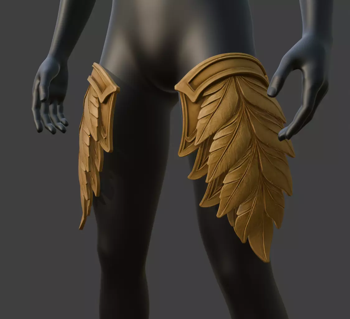 Elegant hip armor shaped like overlapping golden leaves. These tassets **blend nature-inspired curves with ornamental flair —_ ideal for fantasy characters, forest guardians, elven warriors, or ceremonial outfits_**. Lightweight in appearance, but fierce in presence.