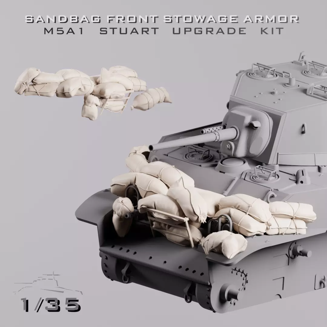 M5A1 Stuart Sandbag Front Armor Set (1/35) – Realistic WWII Stowage STL