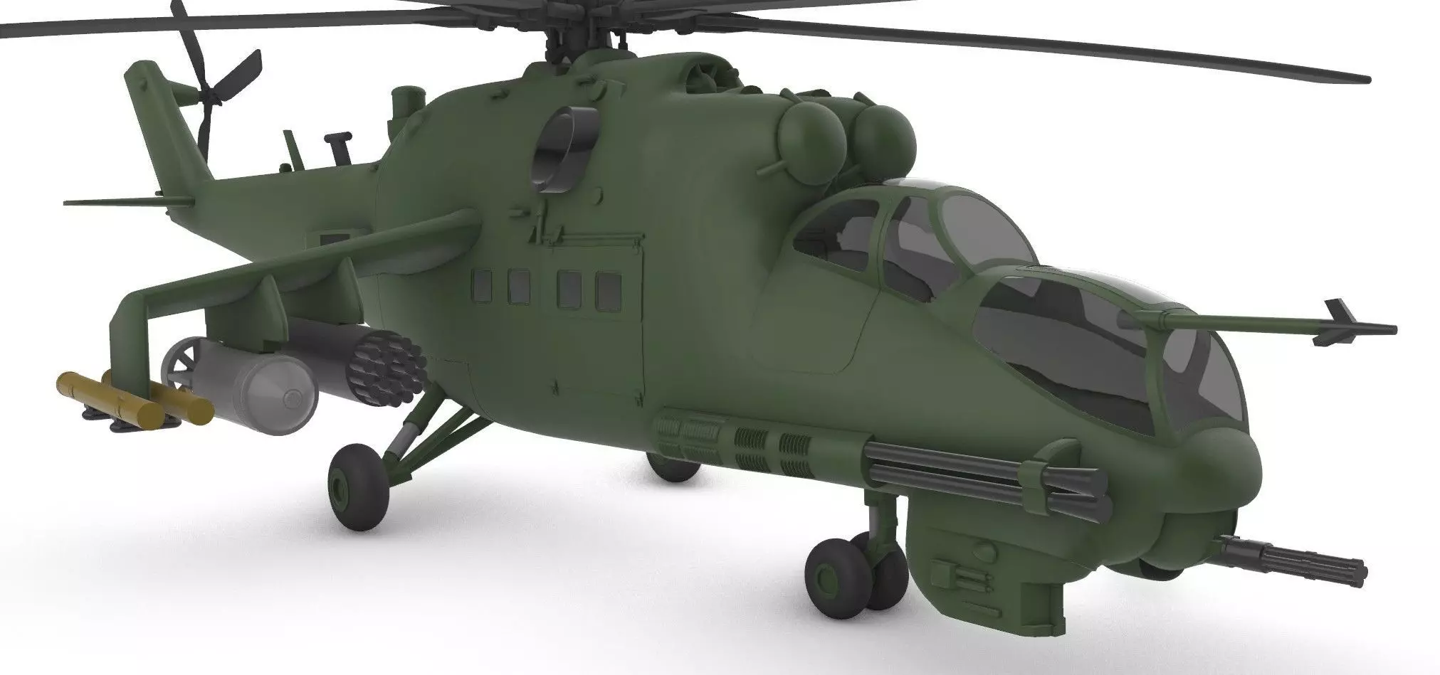 Mil Mi-24 - High-Precision Display ModelBring the legendary Soviet Flying Tank to your collection! The Mil Mi-24 is one of the most iconic attack helicopters in history, known for its aggressive silhouette and devastating firepower. This model has been meticulously developed to capture every detail of the original aircraft, from the double-bubble cockpit to the robust armament system.