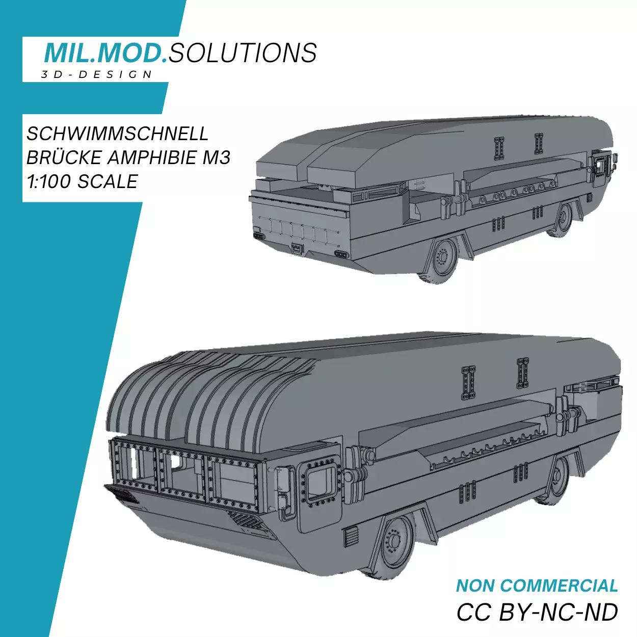 Die Schwimmschnellbrücke Amphibie M3 ist ein vielseitiges, militärisches Fahrzeug, das für den schnellen Brückenbau und die Gewässerüberquerung konzipiert ist. Sie kombiniert Amphibienfahrzeug- und Brückenelemente, um innerhalb kurzer Zeit provisorische Übergänge für schwere Fahrzeuge zu schaffen. Die M3 kann sowohl einzeln als Fähre als auch im Verbund mit mehreren Einheiten als schwimmende Brücke eingesetzt werden. Sie ist mit einem leistungsstarken Antriebssystem ausgestattet, das sowohl an Land als auch im Wasser eine hohe Mobilität gewährleistet. Dank ihrer modularen Bauweise kann sie flexibel an unterschiedliche Einsatzszenarien angepasst werden.