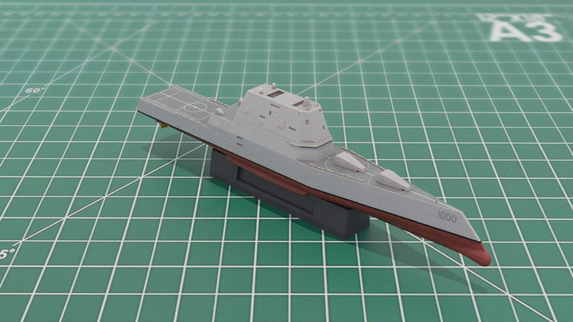 Zumwalt Class DDG 1000 Stealth Destroyer 3D Print STL Model. For a commercial license to sell hard copies of this model please get in touch. STLs are ready to print at 1:1250 scale (approx. 15cm long assembled model). Model may be shown painted in some illustrations. Model is supplied unpainted. Model is split into 4 parts;