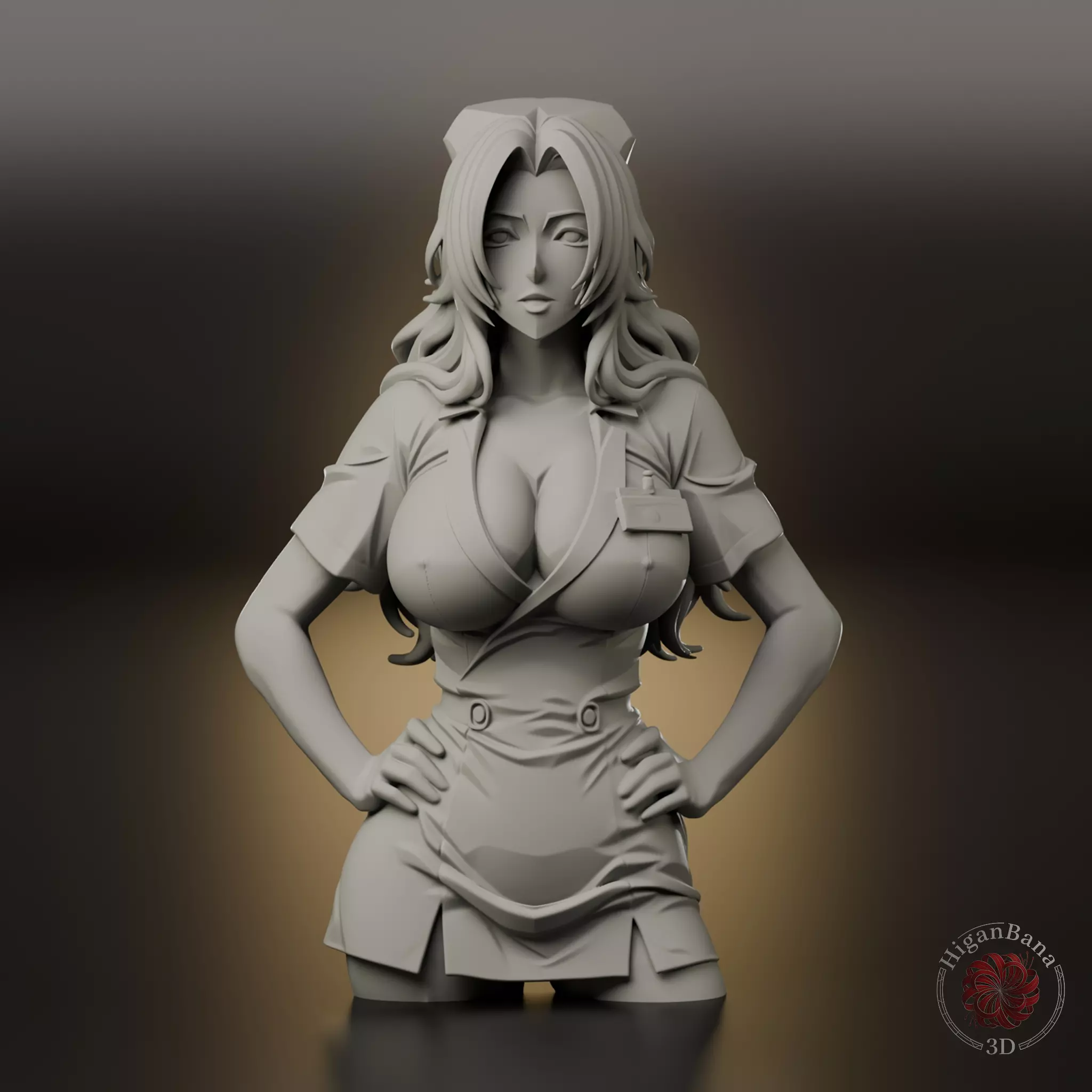 Rangiku Matsumoto from the iconic anime (Bleach) is presented here in a custom, bold nurse uniform.