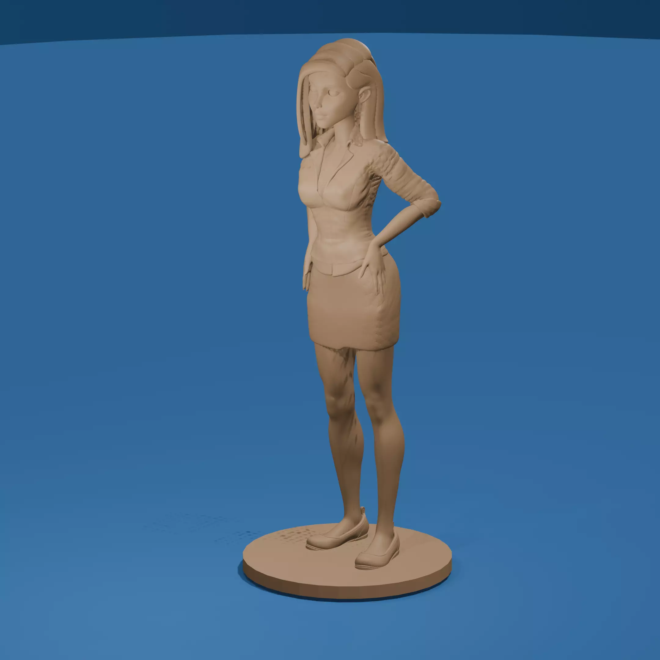 Includes a nude version with the same pose, emphasizing stylized proportions — full bust, slim waist, and smooth contours — ideal for NSFW figurine collectors or stylized pin-up renders.