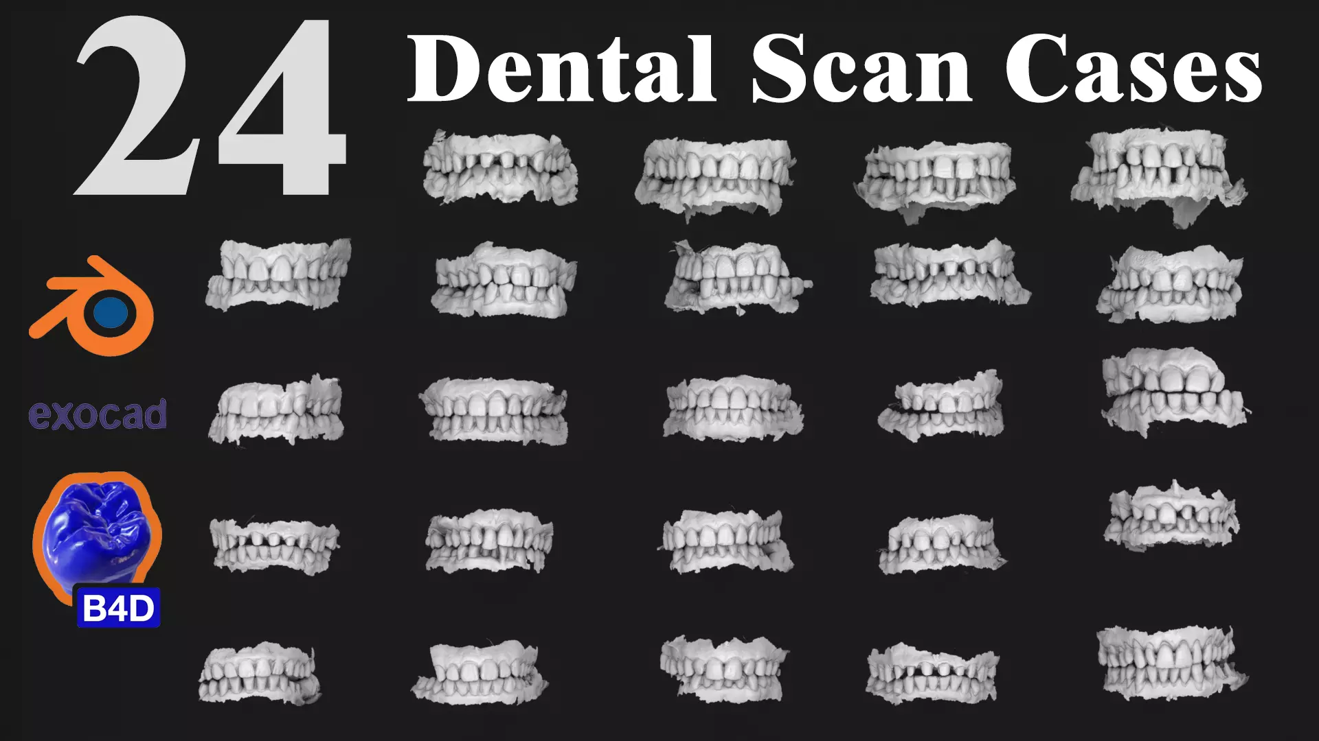Included ContentYou receive the full pack of 24 dental cases exported in multiple professional 3D formats for maximum compatibility.