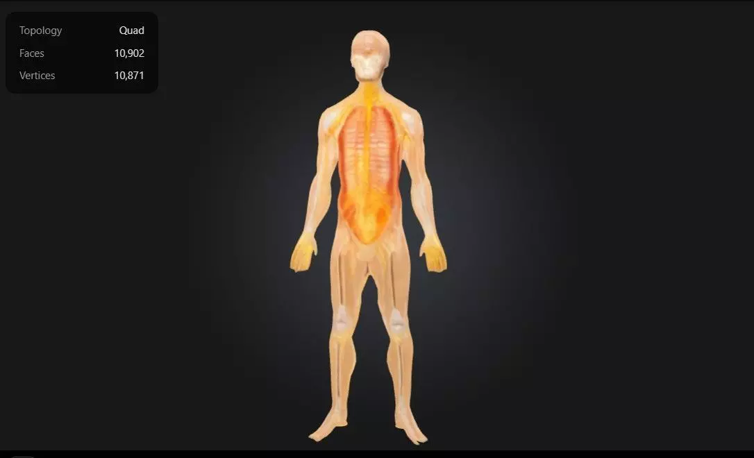 This 3D model of half life-size nervous system anatomy provides a detailed and anatomically accurate representation of the human nervous system. It highlights the central and peripheral nervous systems, including the brain, spinal cord, and an extensive network of peripheral nerves that branch throughout the body. The model clearly illustrates nerve pathways, showing their connections to muscles, organs, and sensory receptors, making it ideal for studying neural communication and physiological processes.