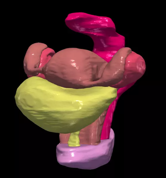 Formats available: obj, stl, dae, fbx, glbSeparate structures: bladder, ovaries, rectum, uterus and tubes, vulva