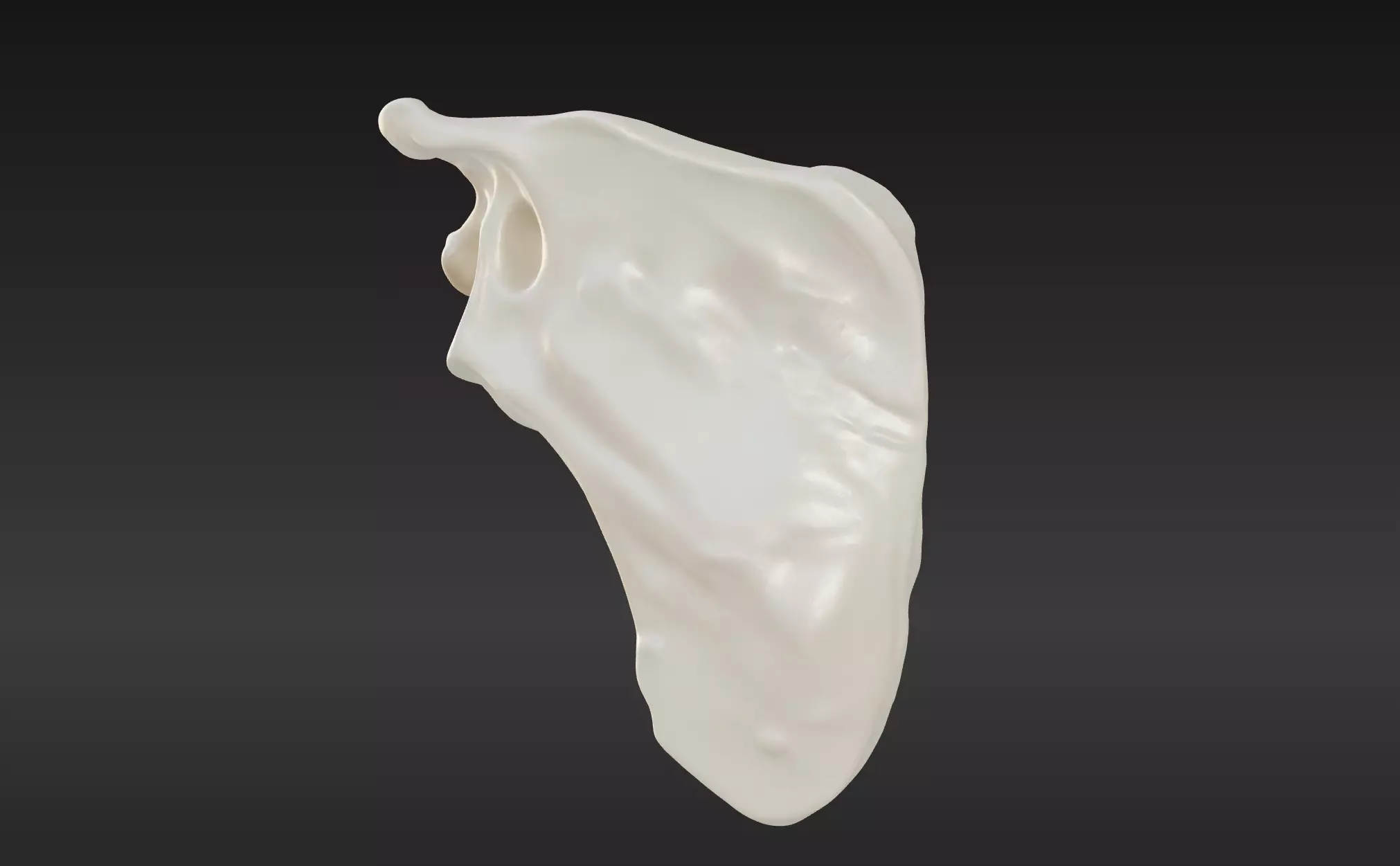 This 3D model of the scapula (shoulder blade) is a meticulously crafted and anatomically precise representation of the human scapula bone. It captures the complex structure and details essential for educational, medical, and professional applications.