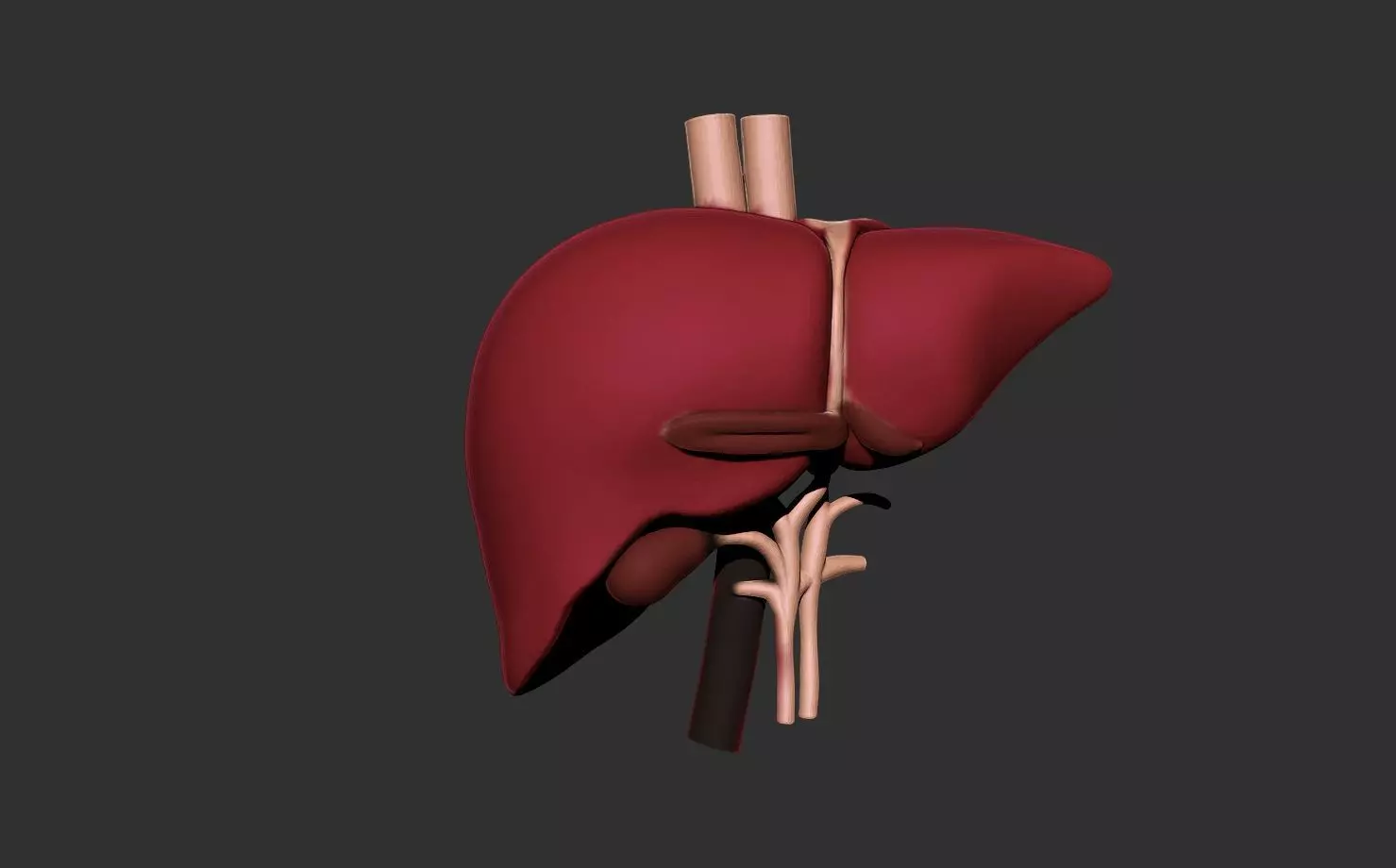 The model features: • Liver lobes, including right, left, caudate, and quadrate lobes. • Hepatic vessels, including hepatic artery, portal vein, and hepatic veins. • Bile ducts and gallbladder included for complete hepatobiliary representation. • Surface anatomy with realistic contours and textures. • Anatomical proportions consistent with human hepatology. • Clean and optimized topology, ready for visualization, simulation, and 3D printing.