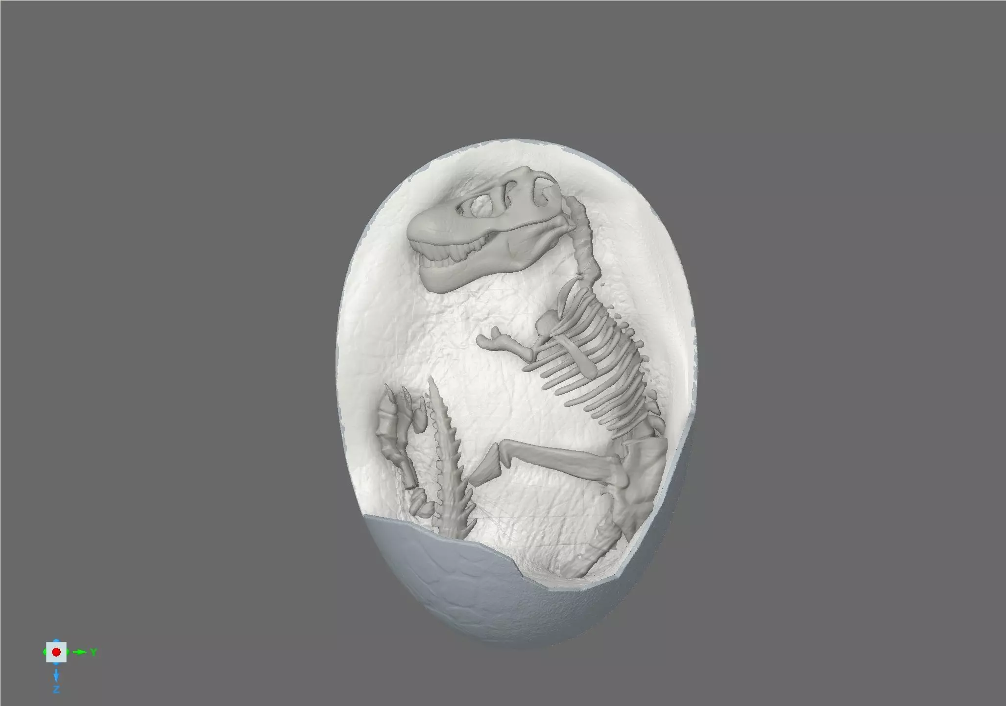 This is a 3D model inspired by a Tyrannosaurus rex (T. rex) egg fossil.There hasn't been a confirmed discovery of T. rex eggs. T. rex lived during the Late Cretaceous period, around 68 to 66 million years ago, and finding intact fossilized eggs of this large theropod dinosaur would be a significant scientific breakthrough.