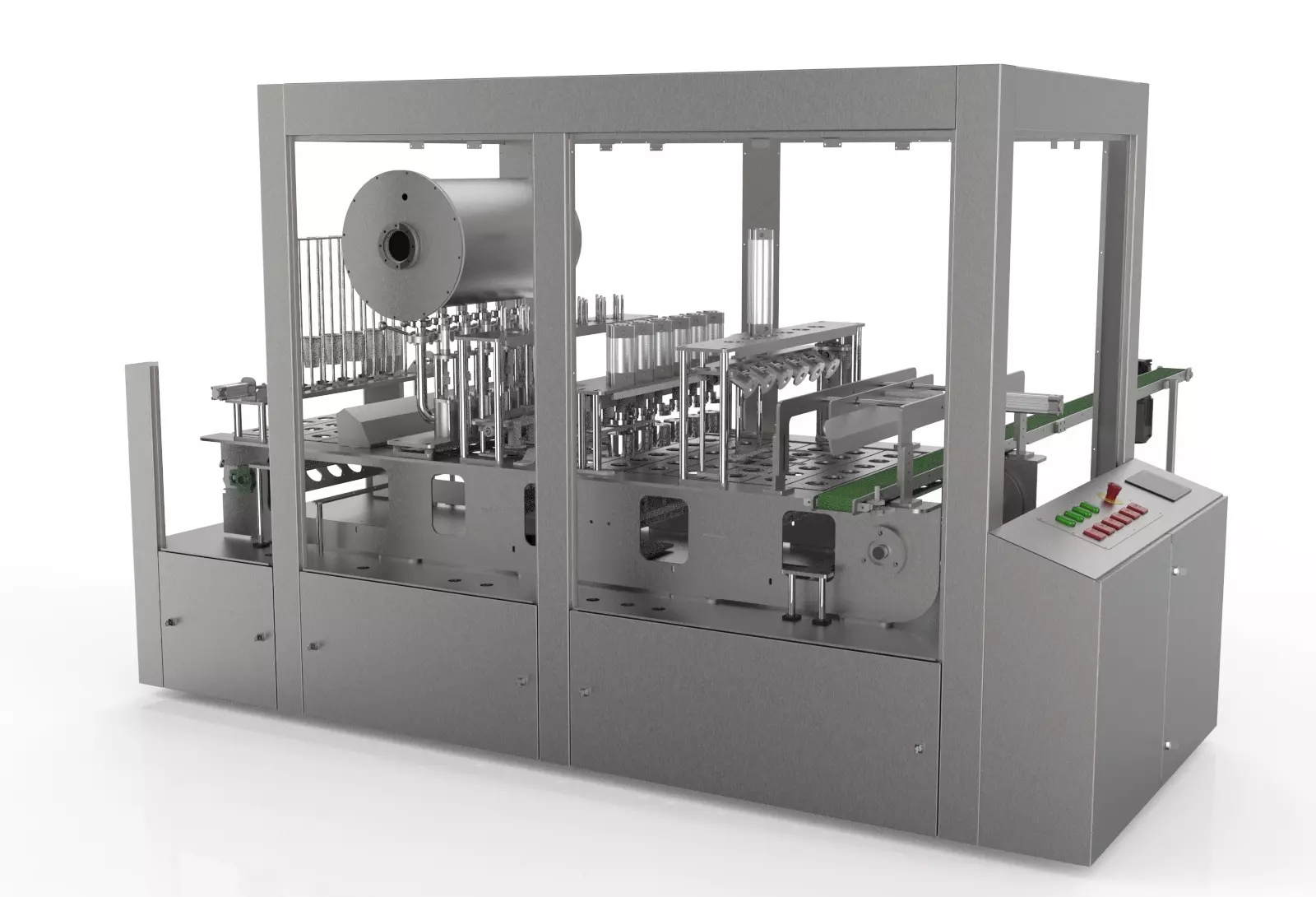 We provide you in full 3D Modeling for filling and sealing machine with 6 nozzles made of stainless steel 304, this machine works with electric motor and geneva gear box , (automatic feeding system , UV lamp for sterilization , filling unit 6 nozzle , aluminum seals feeding system , sealing station by heating heads , expiration date print unit and automatic mechanesim extraction the cups) ,it contains Sldprt , Sldasm ,edrawing solidworks files , dxf autocad files , Keyshot render file , parasolid file, also in these files you can find plans DXF Files for cnc laser cutting and lathing the parts , in this machine we depend liquid falling system , you have all the files you need to create Cups filling production line with 6 nozzels .