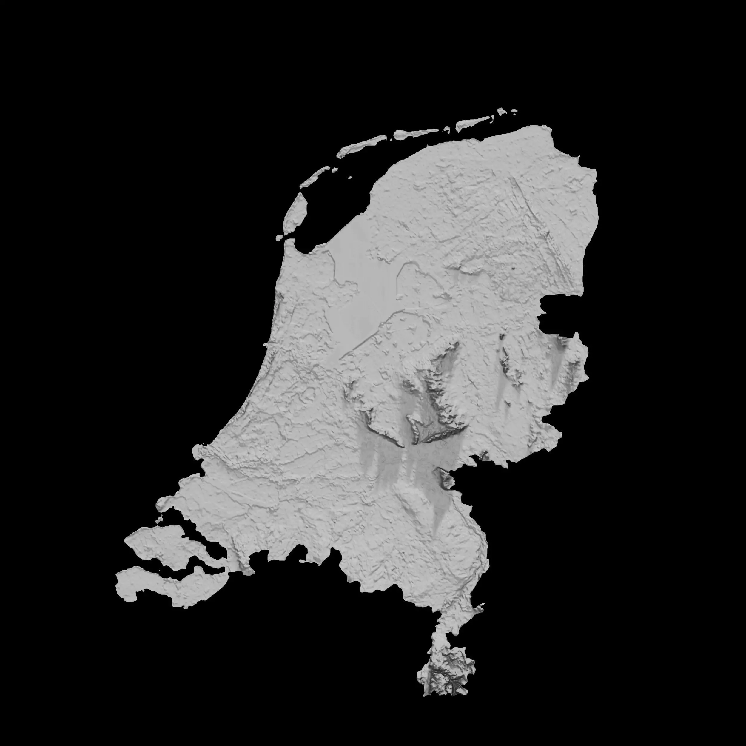 Crafted with meticulous attention to detail, this 3D model features plains, mountain ranges, and rivers, capturing the geography of the Netherlands in stunning 3D detail.