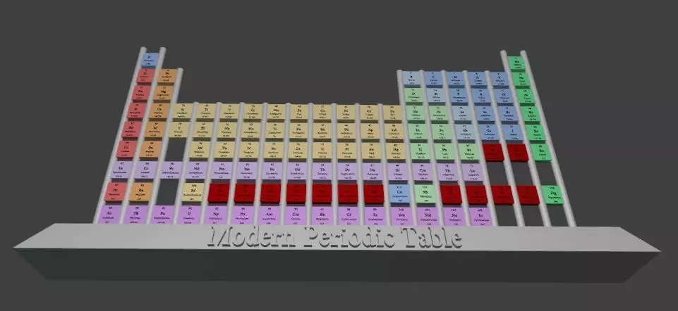 Bring chemistry to life with this 3D Modern Periodic Table Model.Each element is represented as a cube with clear labels: atomic number, symbol, element name, and atomic mass. The layout follows the standard periodic table arrangement, making it both accurate and educational.
