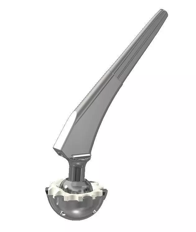 This 3D model is called a hip implant. This 3D model is very much needed for the medical field. This implant serves to connect the femur with the humerus. Hip implants are medical devices designed to restore mobility and relieve pain usually associated with arthritis and other hip diseases or injuries. This type of implant is used in situations where a hip or femur bone injury cannot be repaired.This 3D model is made in Autodesk Inventor 2020 version. Each detail is constructively calculated and finally all the details are assembled. It is possible to prepare an implant based on 3D models. The material of the implant parts is made of titanium and plastic.