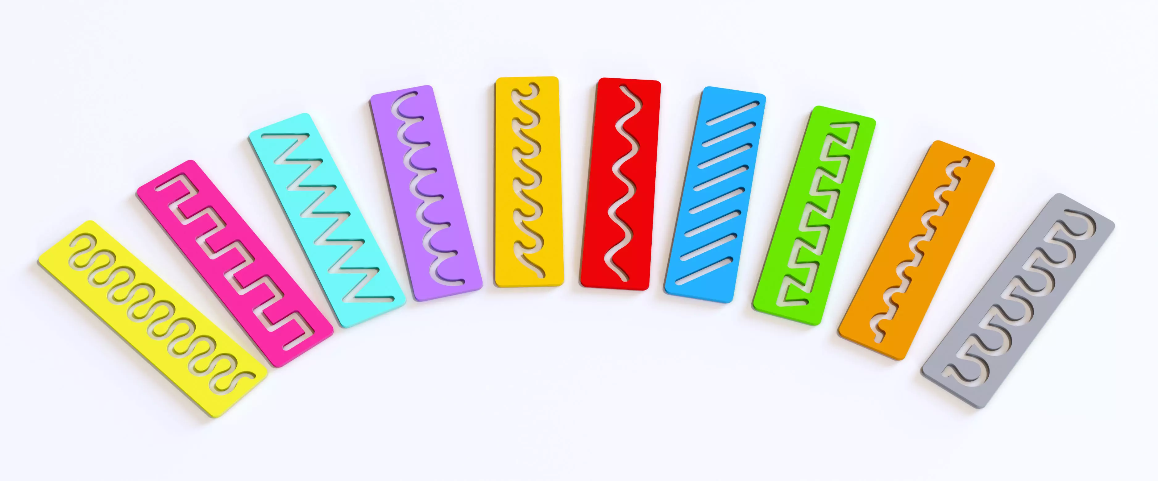 Descripcion del modelo 3DLas regletas de pre-escritura traen diversos trazos, que guian la direccionalidad de la mano y permiten integrar el movimiento de los ojos con la intencion y planeacion de la mano .Ejercitan (los pequenos musculos de) lo que facilita la precision del trazo y una optima pinza.Al hacer uso de las regletas cada mano tendra una funcion diferente estimulando la coordinacion motora.Se puede incluir el dibujo creativo, iniciando el mismo con la figura de la regleta y completandolo con el dibujo libre.Por ejemplo: imaginamos las olas del mar, el techo de un castillo, la M de MC , caracoles, montanas, etc...Siempre aprende jugando