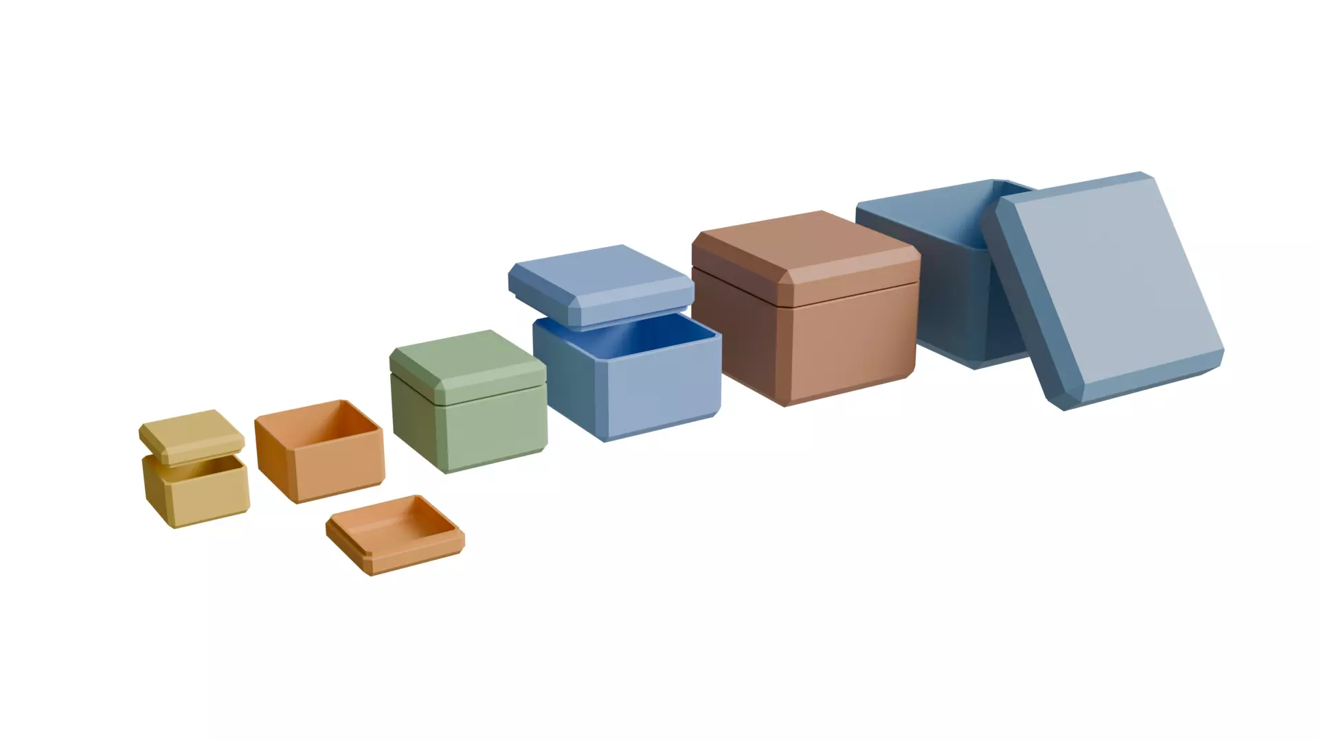 This 3D printable snap-fit storage box set is designed for functional use, rapid prototyping, and small parts organization.The set includes 6 proportionally scaled box sizes, each featuring a snap-fit friction lid that securely holds in place without glue or hardware.The clean geometry and 2 mm wall thickness make these containers reliable and easy to print on most FDM 3D printers.