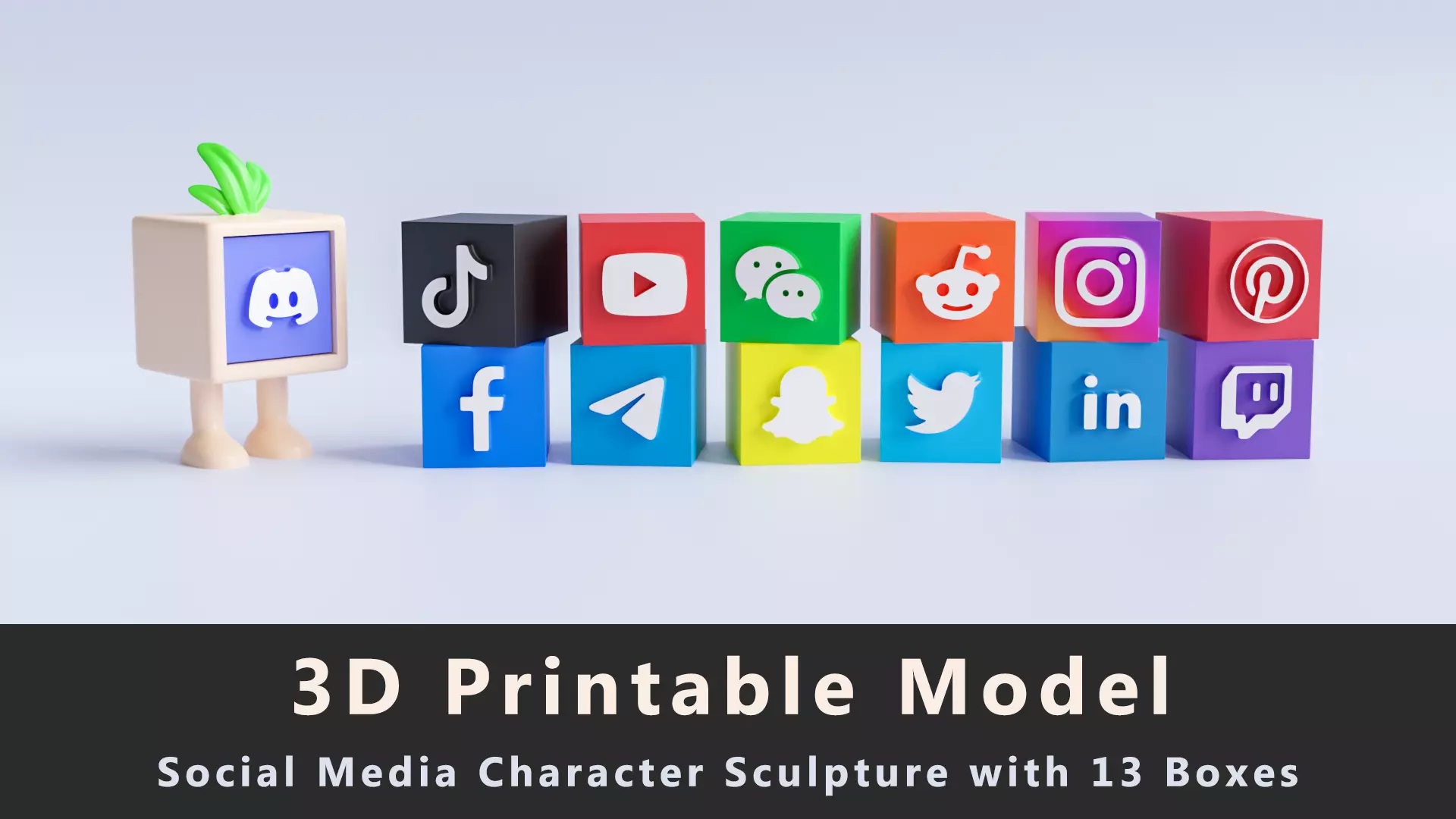 Elevate your space with our innovative 3D Character Sculpture with 13 Social Media Boxes – a captivating blend of art and technology that allows you to curate your digital world in a tangible form. This 3D printable model features a stylish character sculpture with a unique twist – an open design that accommodates 13 interchangeable social media boxes.