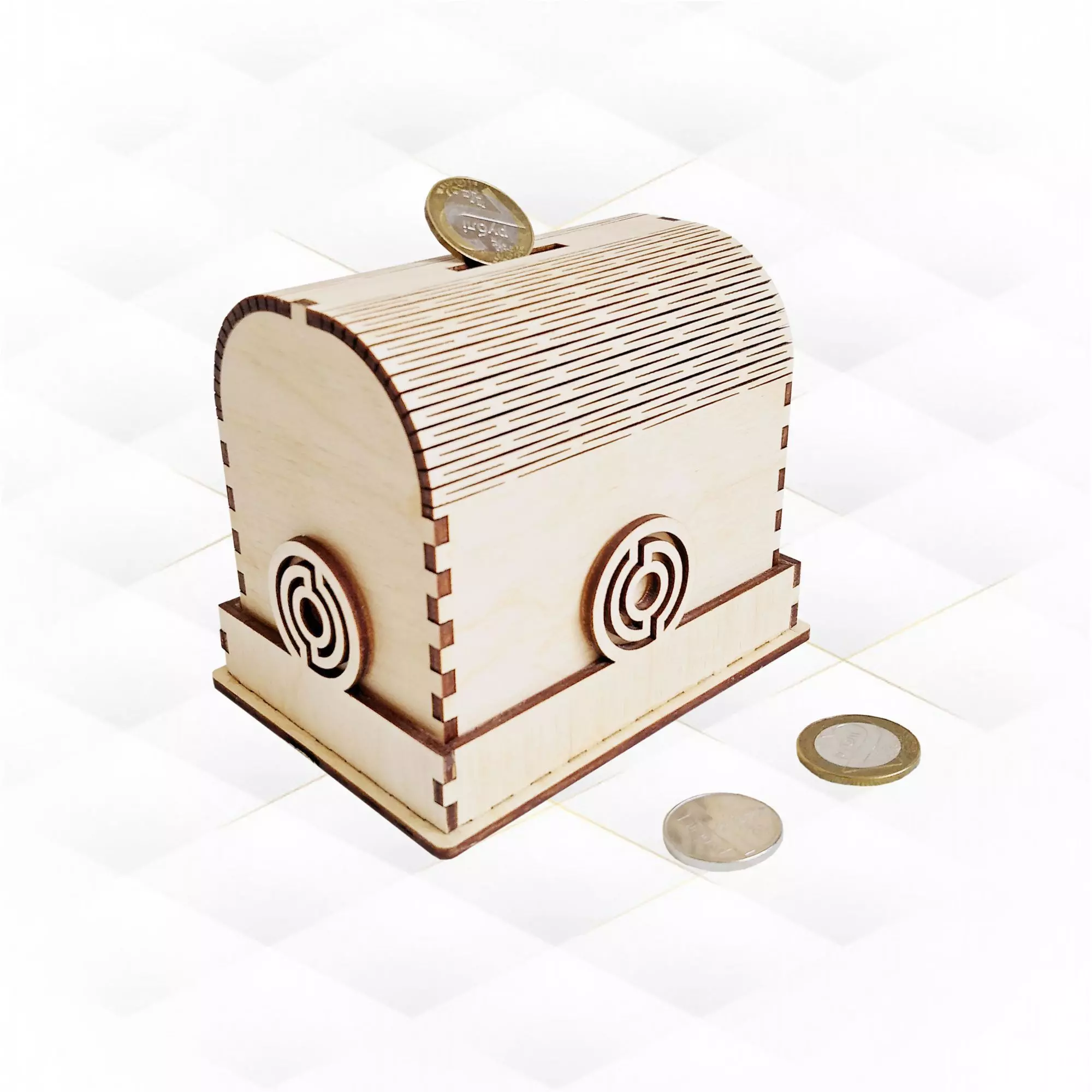 Files for cutting 3mm thick are included. The photographs show a design Coin Box made of 3 mm plywood with dimensions:93 x 114 x 84 mm or approximately 3.7 x 4.5 x 3.3 inches.Largest part to cut: 216 x 100 mm (8.5 x 4 inches).