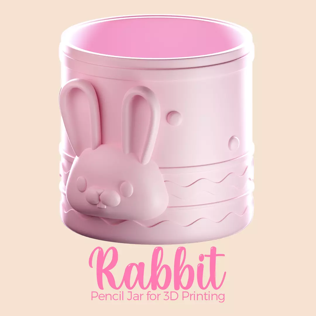 Download the STL file and 3D print it to enjoy this charming accessory on your desk or in your room. Not only is it practical, but it’s also a fun way to bring life to your workspace with a touch of fantasy and joy. Get yours today!. Print a cute bunny jar to put pencils and pens, its size is 75 x 76 x 87 mm, it is perfect to accompany your desk or work table.