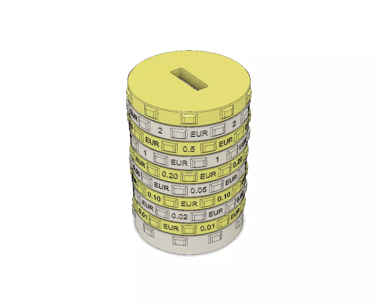 This is piggy bank / money box with a coin sorting capability. At the bottom there's an additional compartment for bills.Just drop coins into a slot or funnel, shake and rotate the box a few times and all the coins will get sorted!
