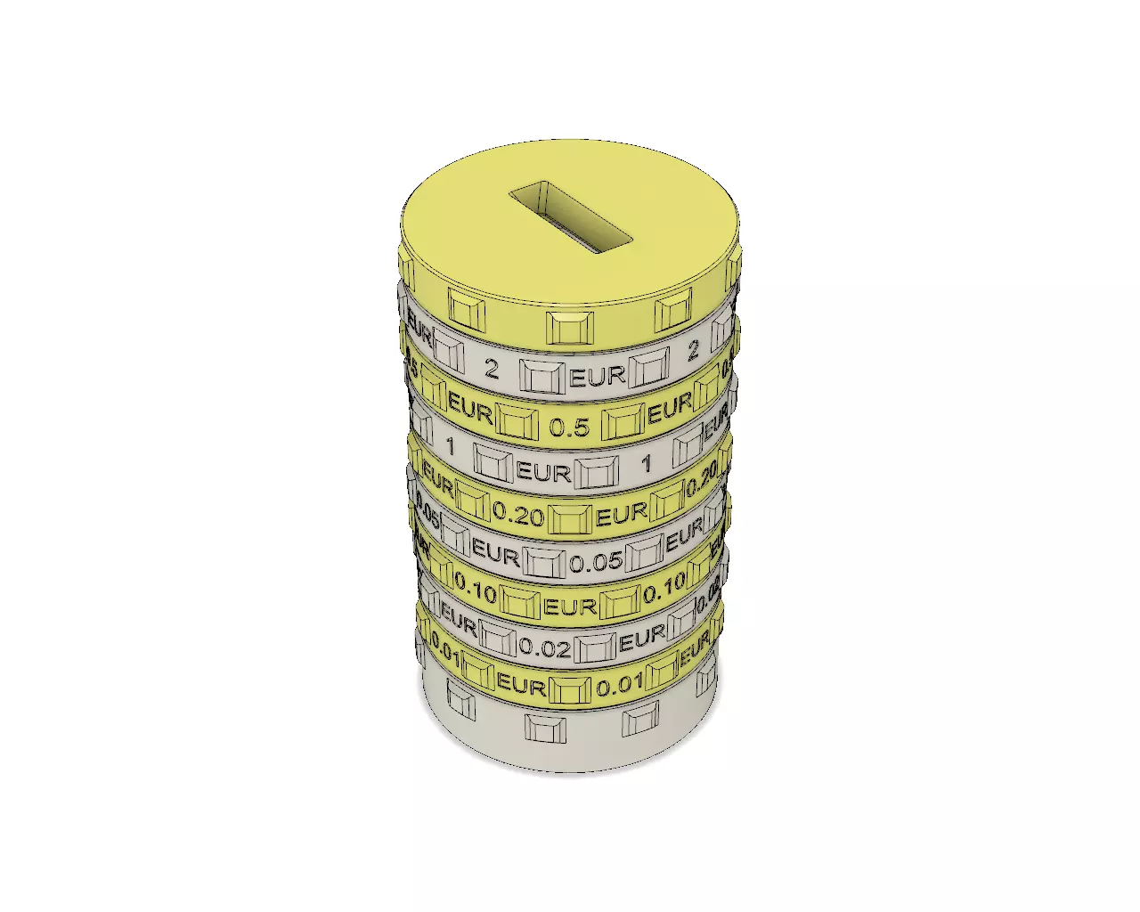 This is piggy bank / money box with a coin sorting capability. At the bottom there's an additional compartment for bills.Just drop coins into a slot or funnel, shake and rotate the box a few times and all the coins will get sorted!