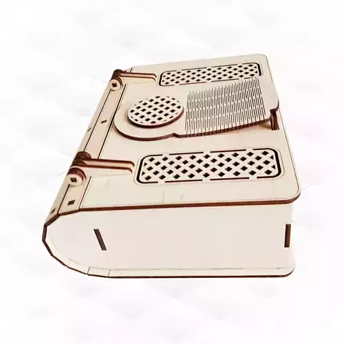 Files for cutting Jewelry Box for 3mm material thickness are included. The photographs show a design made of 3 mm plywood with dimensions:176x151x75 mm (7x6x3 inches).Largest part size 176x118 mm (7x4.7 inches). Glue is used for assembly!