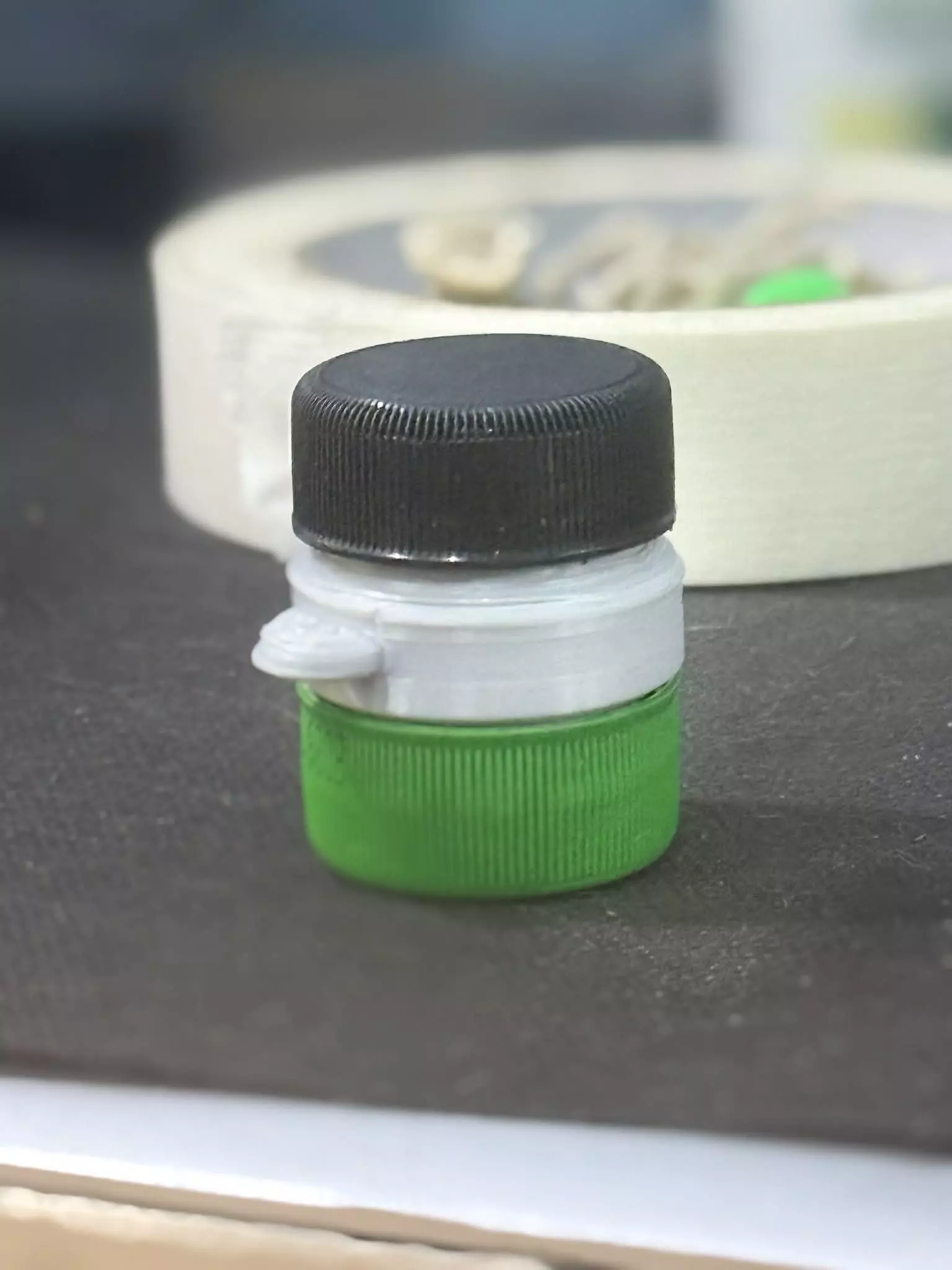 Design ConceptThis 3D printed pill case reuses a bottlecap to create an eco-friendly storage solution for medications or vitamins. Its compact design makes it convenient for travel and daily use.